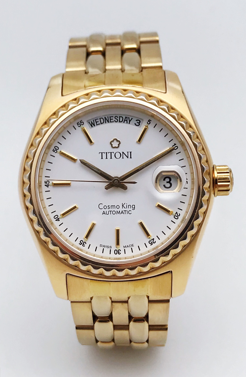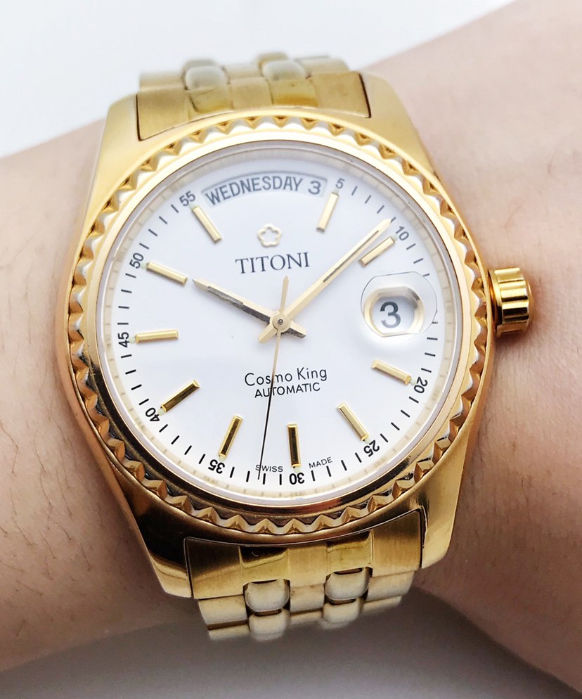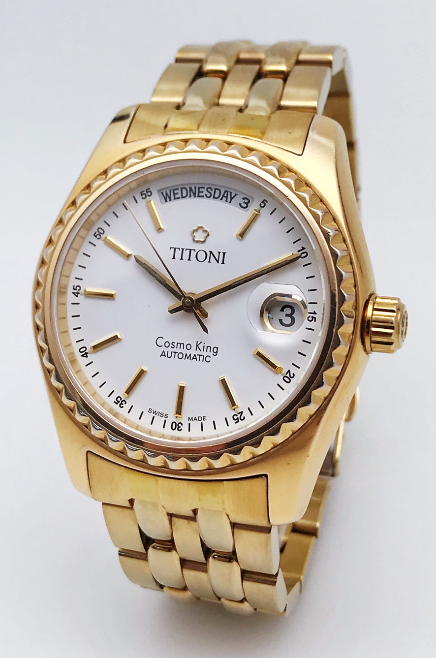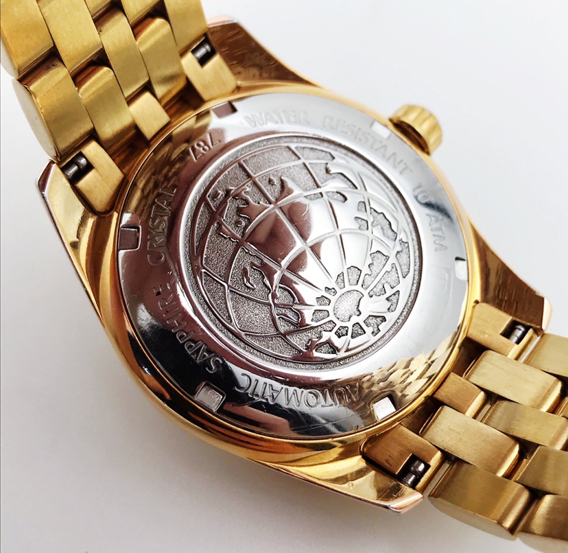 梅花男士系列全自动机械男表,表径尺寸38.5mm,表壳表扣黄色PVD镀层,12点位星期显示,3点位放大日历显示。单表无附件,店铺提供一年机芯免费保修服务,线上线下同步销售,拍前请私信客服确认商品库存。
