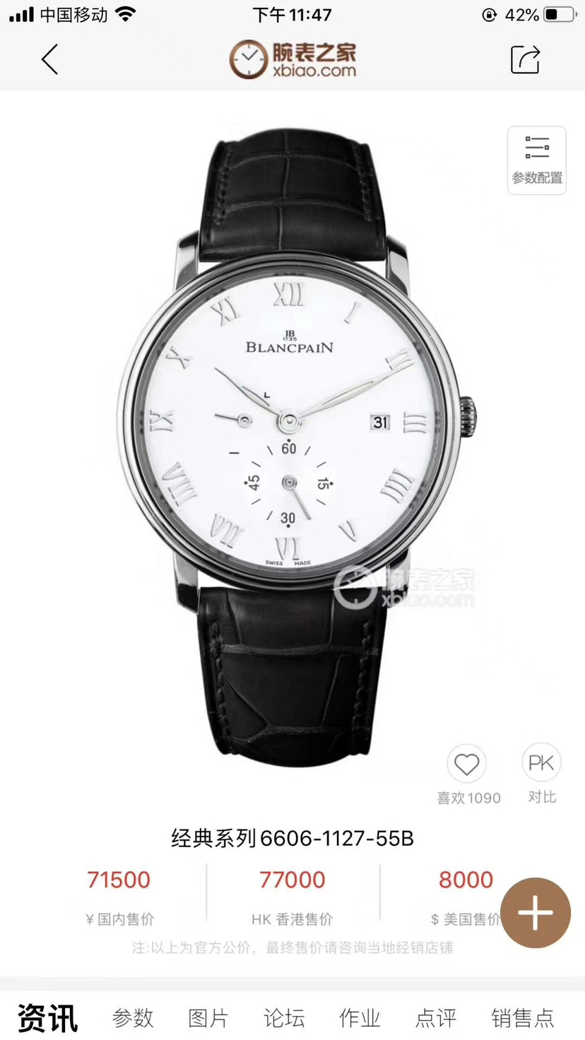 Blancpain 宝珀 经典系列6606-1127-55B,宝珀时间与艺术的缔造者,艺术和工艺的完美化身,经典系列6606,40mm表径,超薄表身,搭载CAL.11C5手动机芯,动力储能100小时,专柜售价77000,