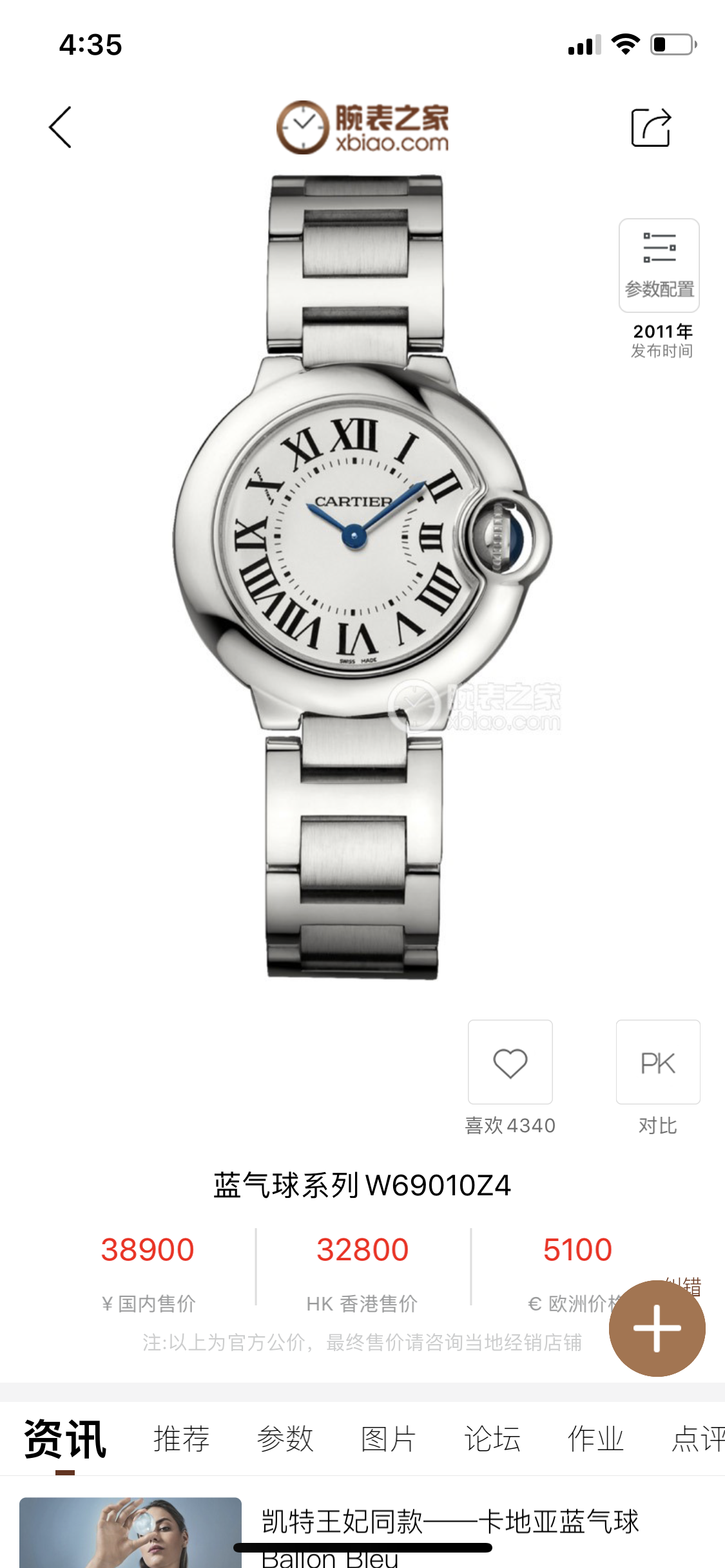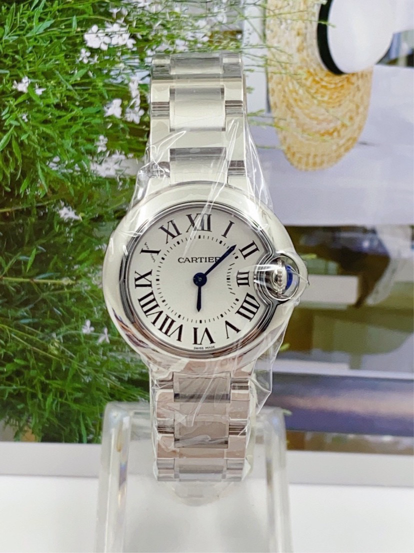 卡地亚蓝气球系列W69010Z4.女士石英腕表 .28毫米表盘.白盘钢带款.超级热门款.专柜质保 公价38900,附件 未使用全套———顾客需知———