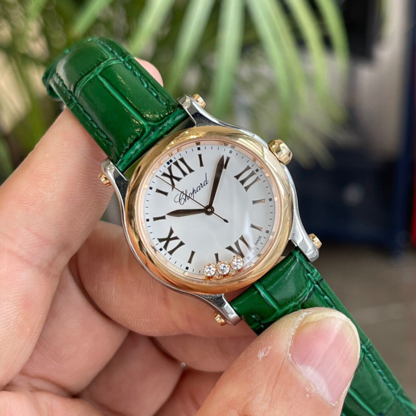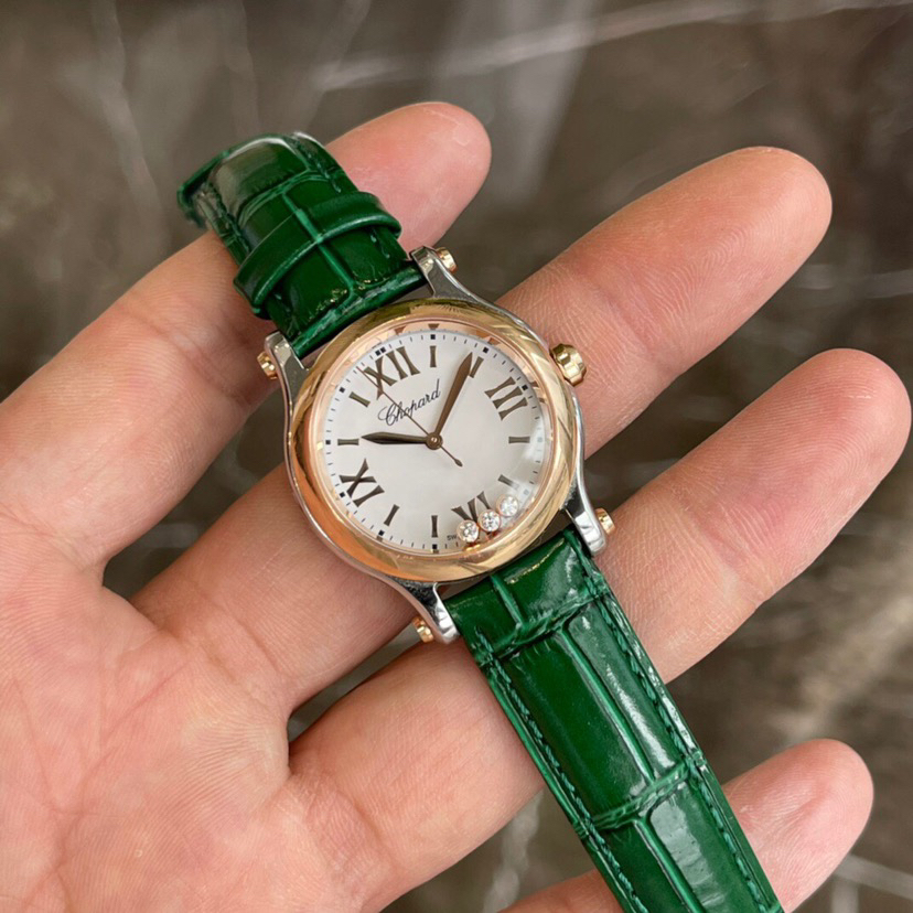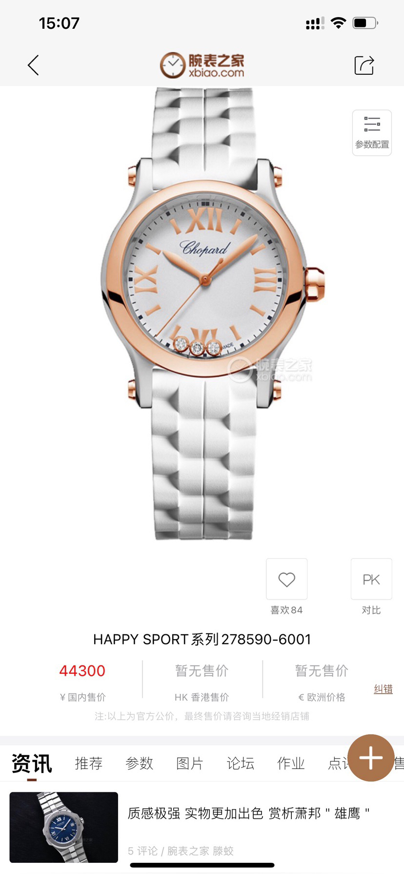 萧邦快乐钻系列 型号:278590-6001女士石英腕表,18k玫瑰金-精钢材质,三颗灵动钻石,附件:极品全套 公价44300