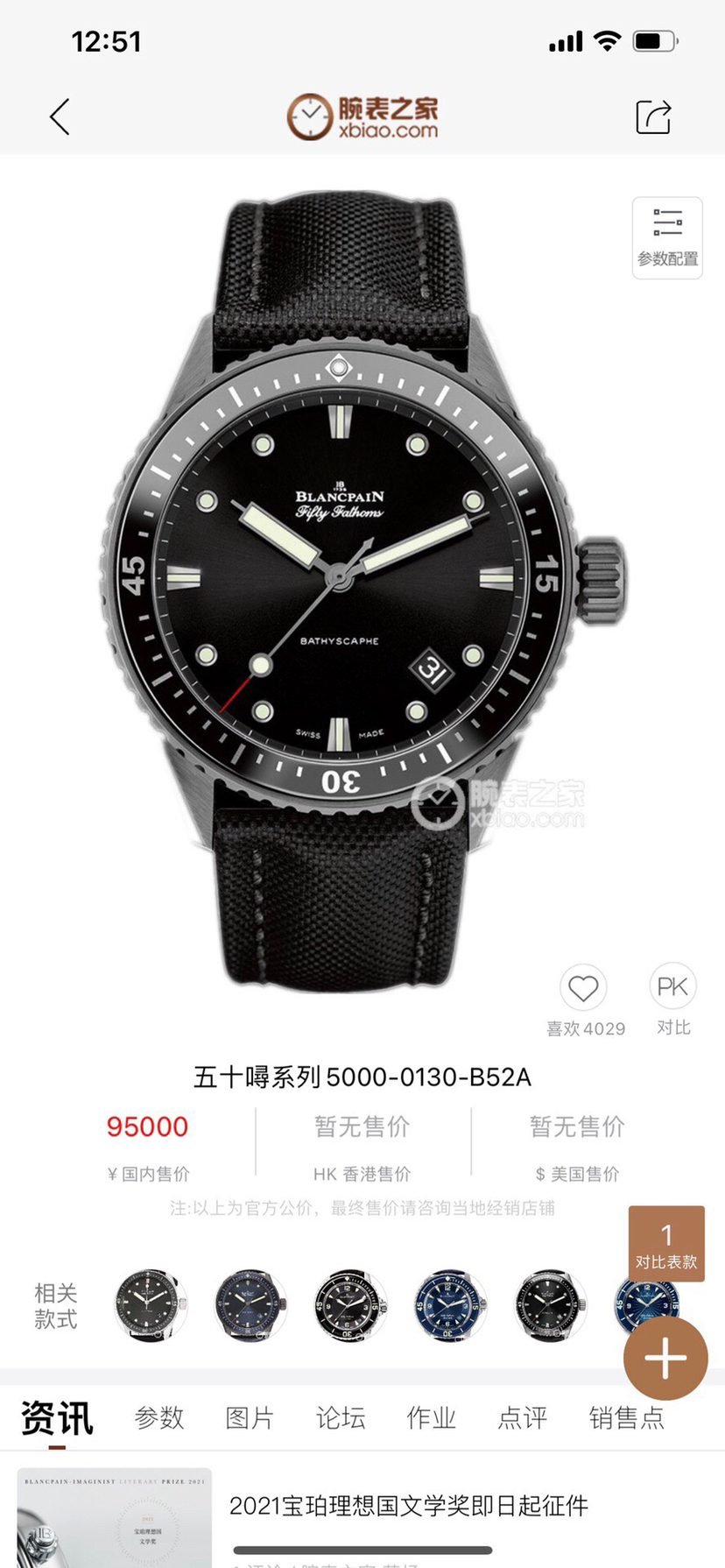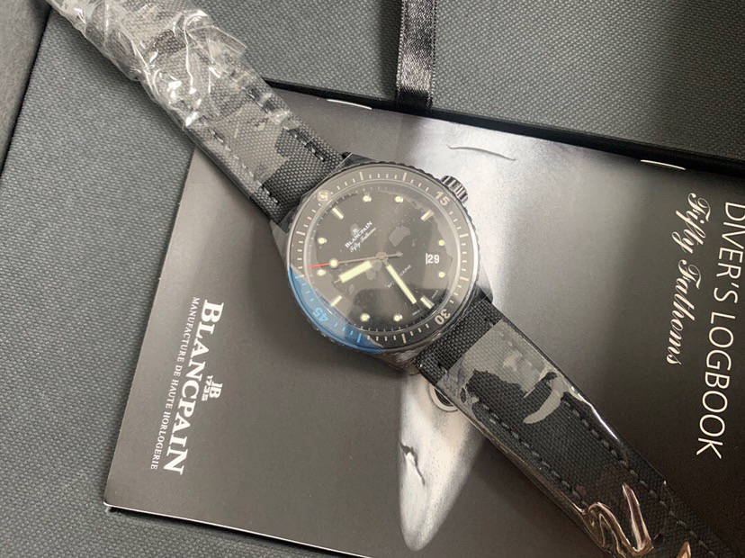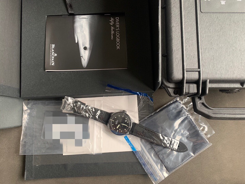 宝珀五十噚5000-0130-B52A男士机械表,表径43.5mm,缎面磨砂黑陶瓷款,8年联保,黑武士款,专柜价95000 附件 未使用全套———顾客需知———