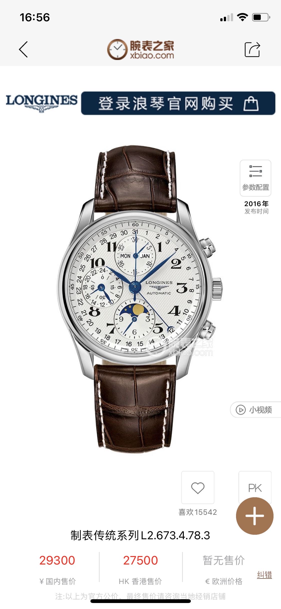 浪琴L2.673.4.78.3名匠系列男士机械腕表,日期、星期、月相、计时、月份及双时区等功能,表径40,新款机芯,原价29300现未使用品,全套好价