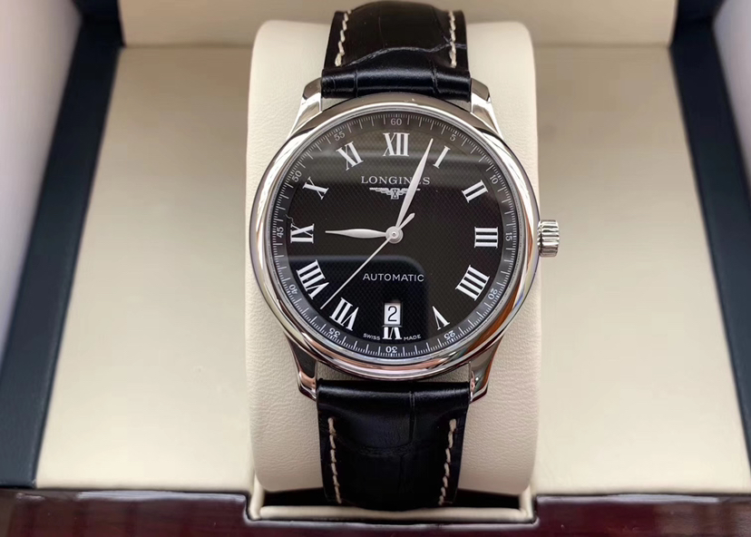 浪琴制表传统系列名匠 L2. 628. 4. 51. 7,自动机械男士腕表,搭载Cal. L619背透机芯,表径38.5mm,黑盘黑带,防水深度30米,黑色“麦粒”纹饰,漆绘罗马数字,镀银沙色指针,蓝宝石水晶玻璃 公价15700 现货好价
