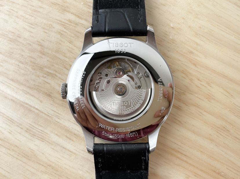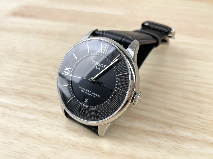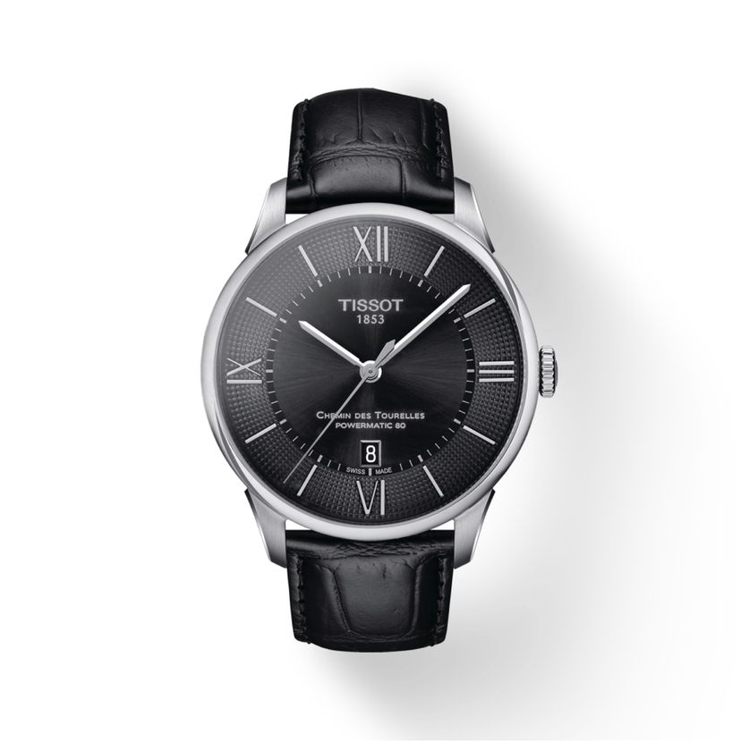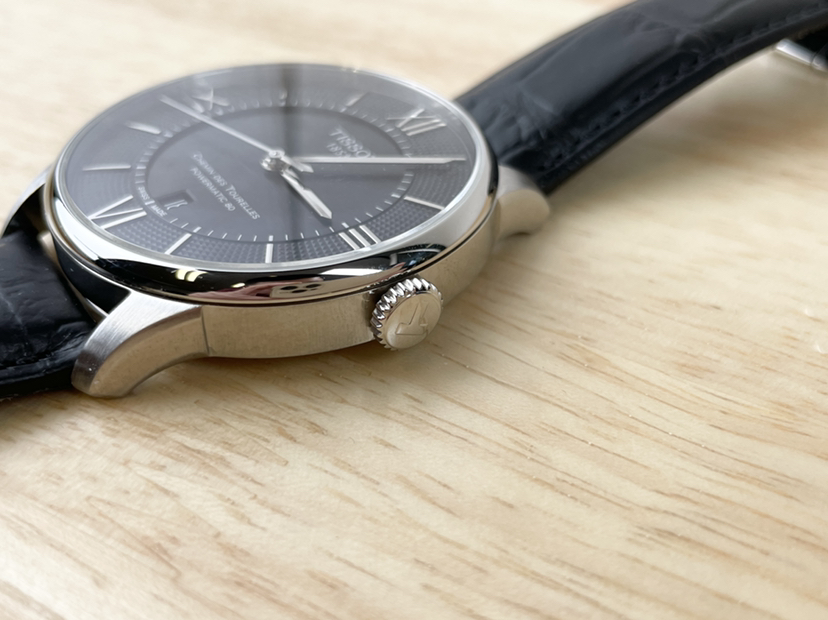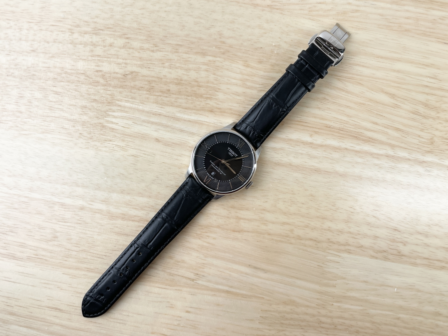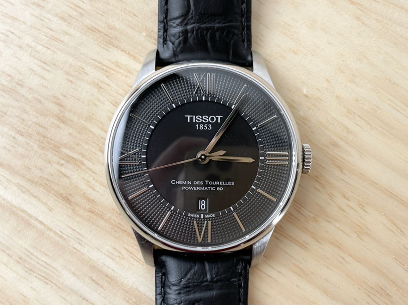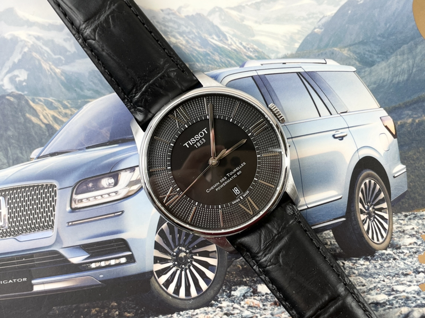 天梭杜鲁尔系列T099.407.16.058.00,42毫米不锈钢皮带款黑盘三针日历,自动上链机械男表,新款80机芯,公价5800,95新单表
