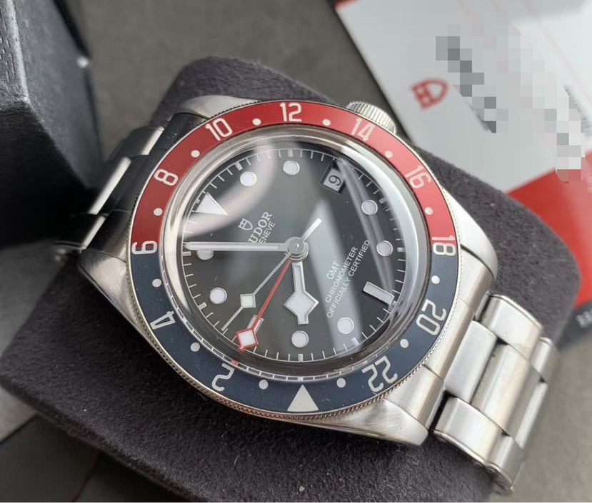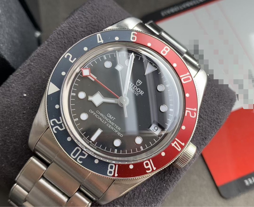 帝舵碧湾系列M79830RB-0001男士自动机械腕表,表径42毫米,精钢材质,钢带款,黑色字面,经典款可乐圈,不锈钢双向旋转外圈,搭载MT5652机芯,热门可乐圈 24小时刻度,哑光酒红色及蓝色阳极氧化铝字圈,新款热门款。附近:全套 公价31200