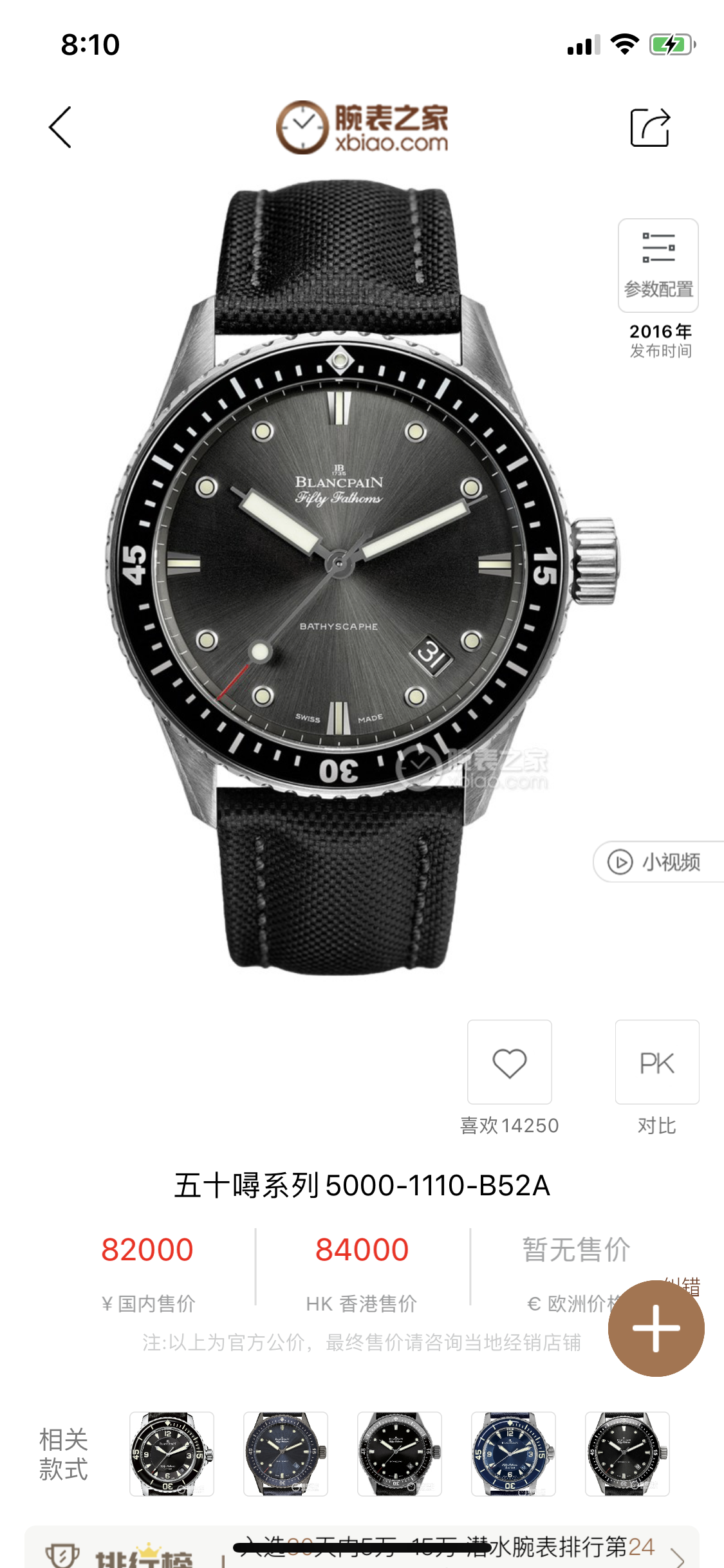 腕表特征:男士机械腕表,43mm表径,黑色陶瓷外圈五十噚,潜水表鼻祖,防水300米,120小时动力储备,附件:未使用全套
