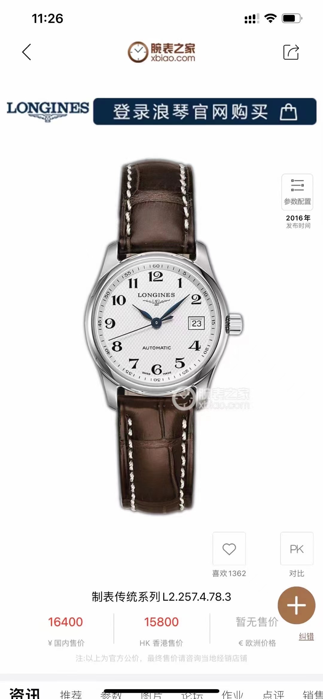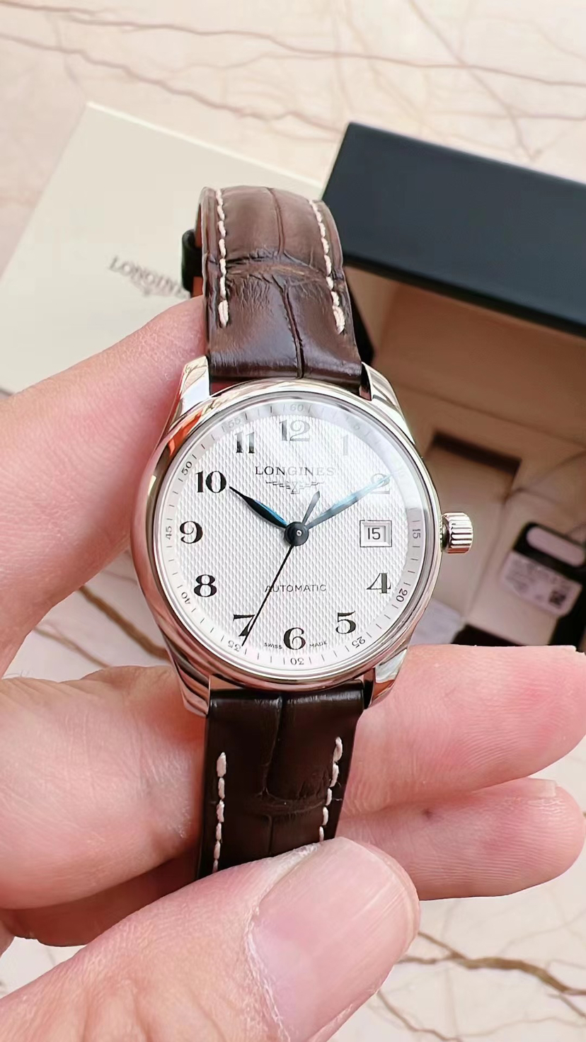 浪琴名匠l2.257.4.78.3女款自动机械腕表,29mm表径,银色麦粒饰纹盘面简约蓝钢三针,基础款没啥折扣,未使用品近期卡全套