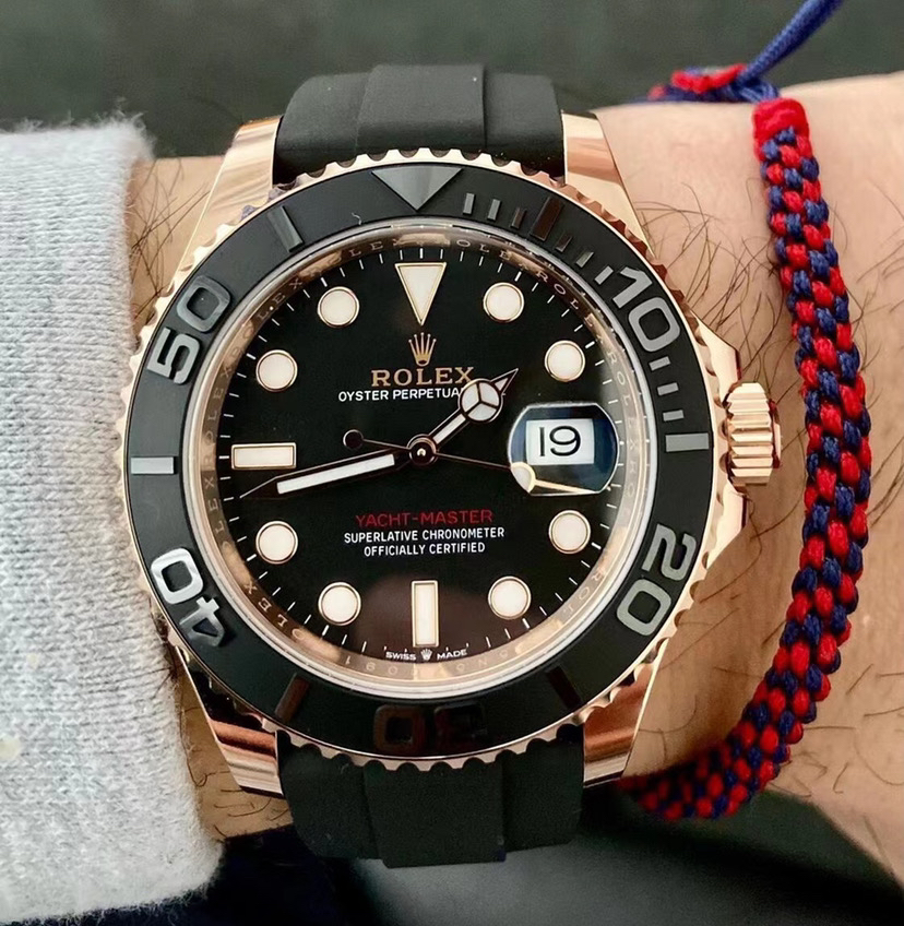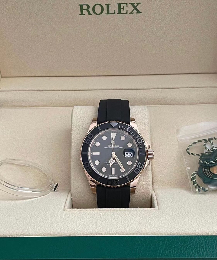 Rolex劳力士游艇名仕系列126655,18k玫瑰金材质,黑色喷砂双向旋转表圈,舒适贴合的橡胶表带,大热门款,逼格满满,专柜售价225200,附件未使用全套———顾客需知———