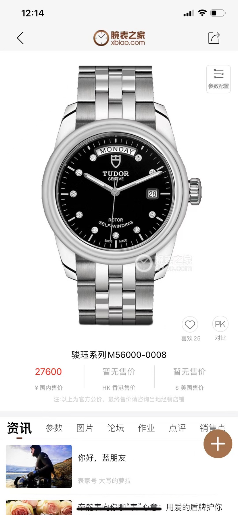 帝舵骏珏56000 黑色盘镶钻 表径39毫米 自动机械 参考公价27600元