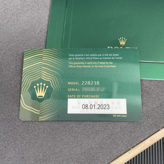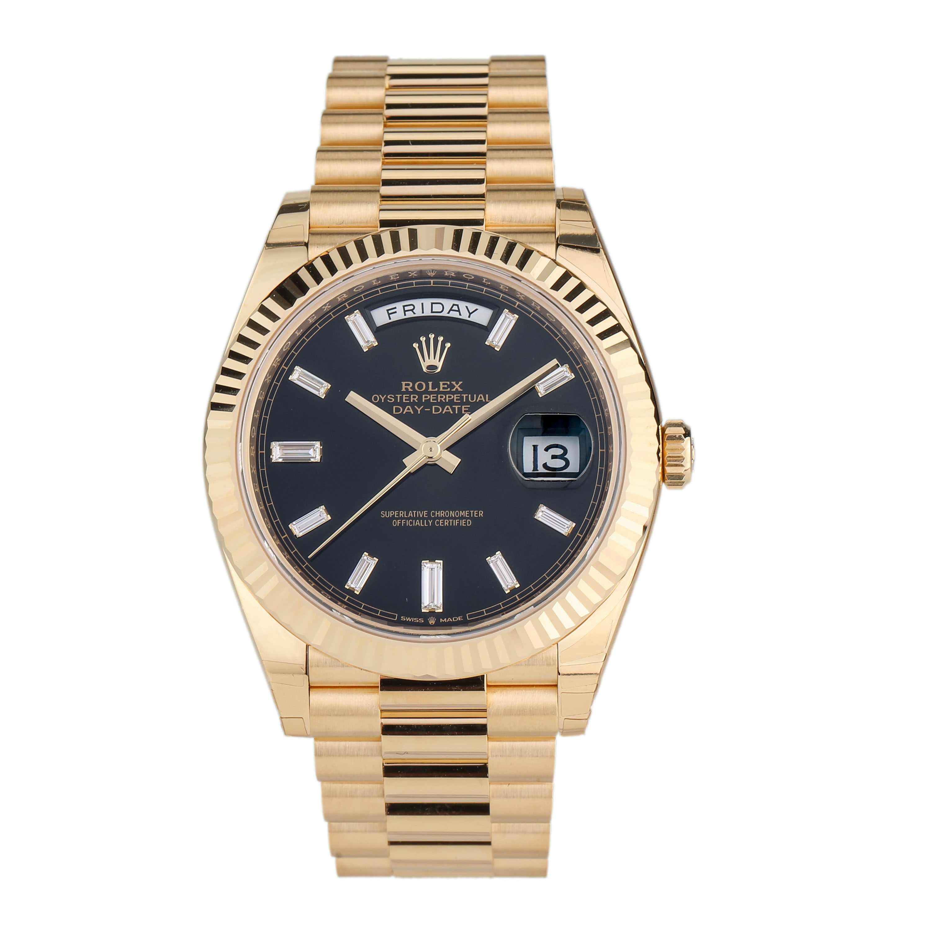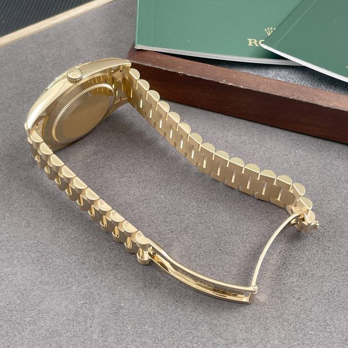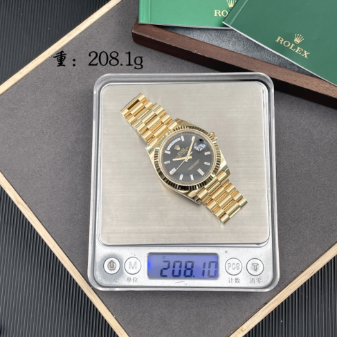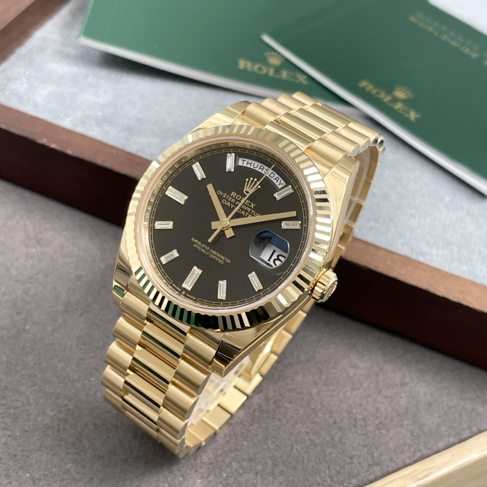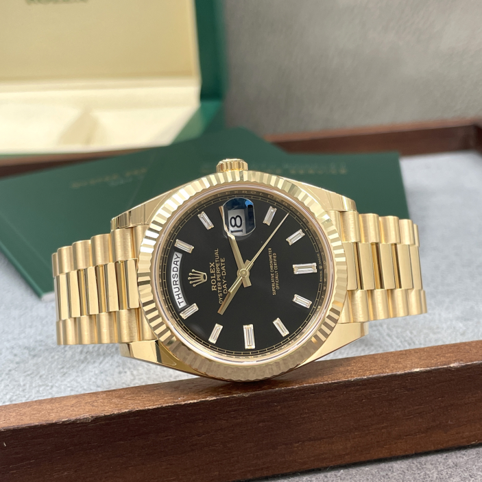m228238-0004保卡日期2023年1月柜台展示品未使用劳力士星期日历型系列18k全黄金原镶时标T方钻黑冰糖自动机械男表70F0E*** 全长表节 重量:208.10g(不议价)表径40mm