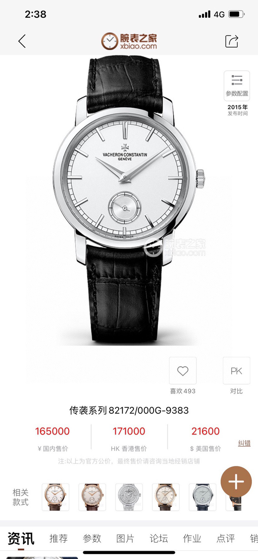 江诗丹顿传袭系列82172/000G-9383 男士手动机械,38表径,18白金材质,附件:极品单表有保卡 专柜价:165000———顾客需知———
