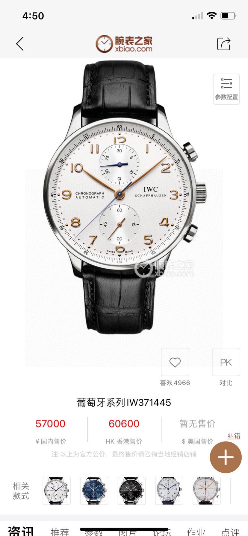 万国表葡萄牙系列IW371445腕表金针葡计,