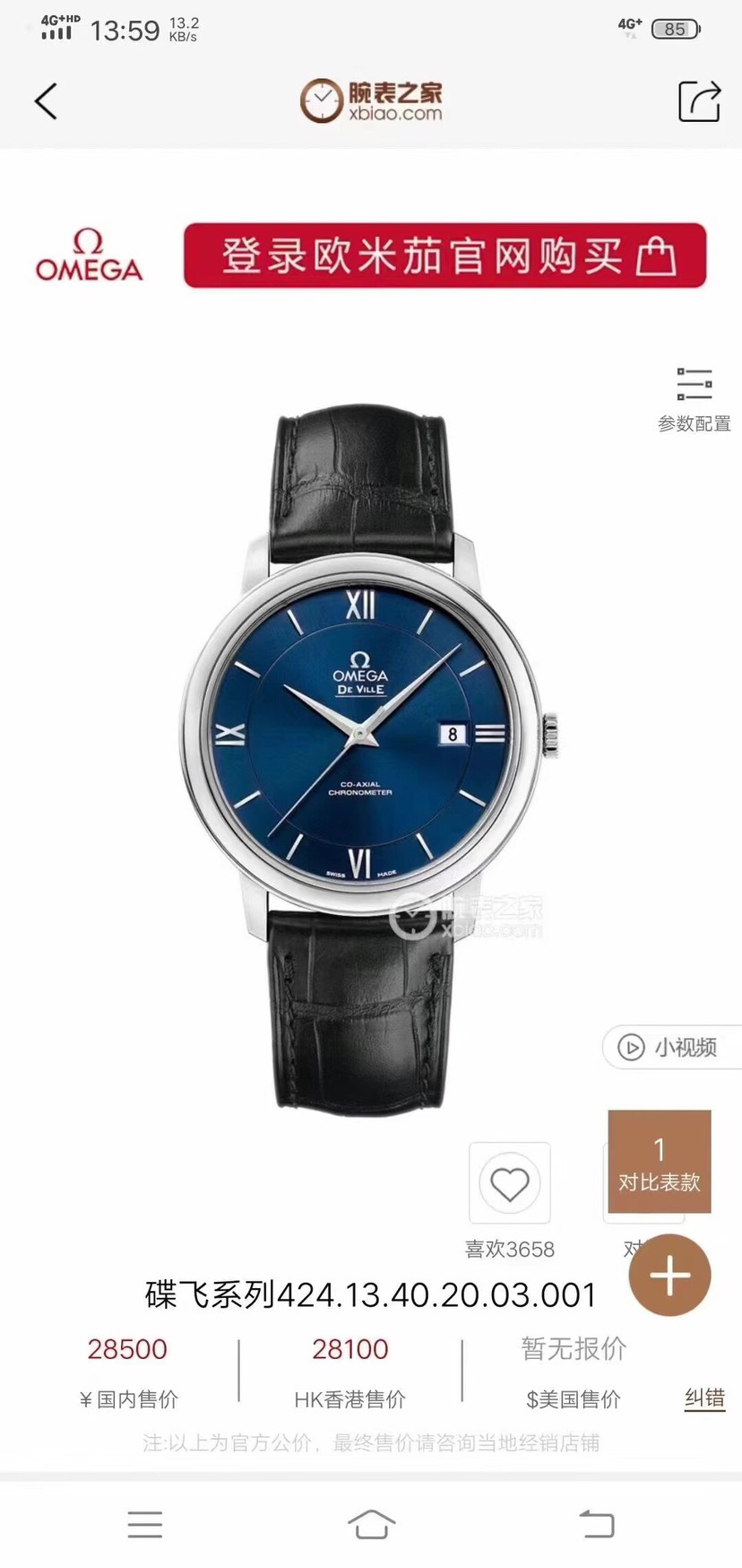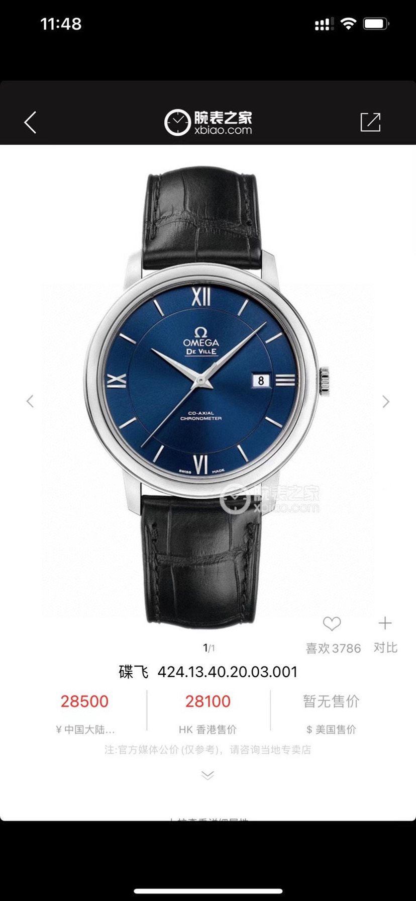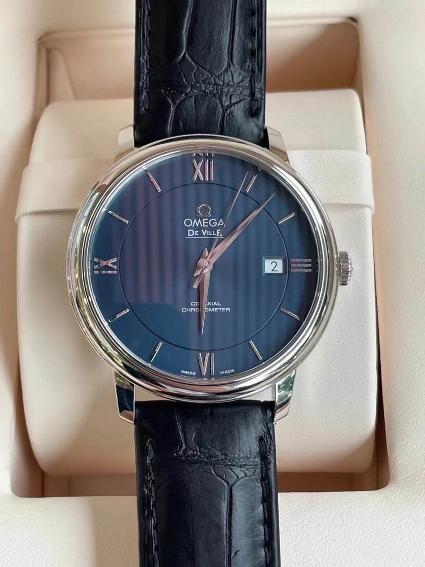 欧米茄 碟飞424.13.40.20.03.001自动机械表,表径39.5毫米,蓝面大三针,专柜28500 全套未使用品近期卡 ———顾客需知———