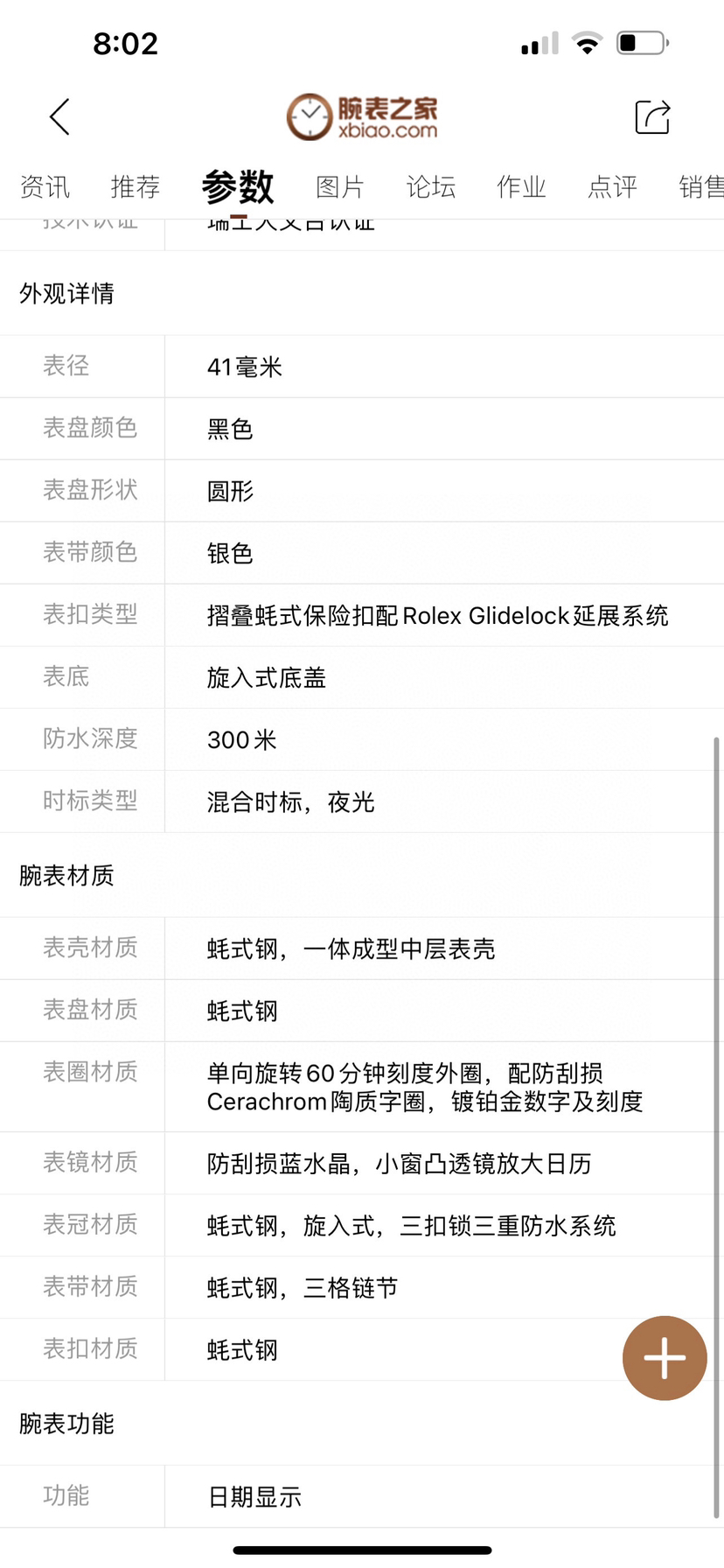 表径41mm 表壳材质蚝式钢