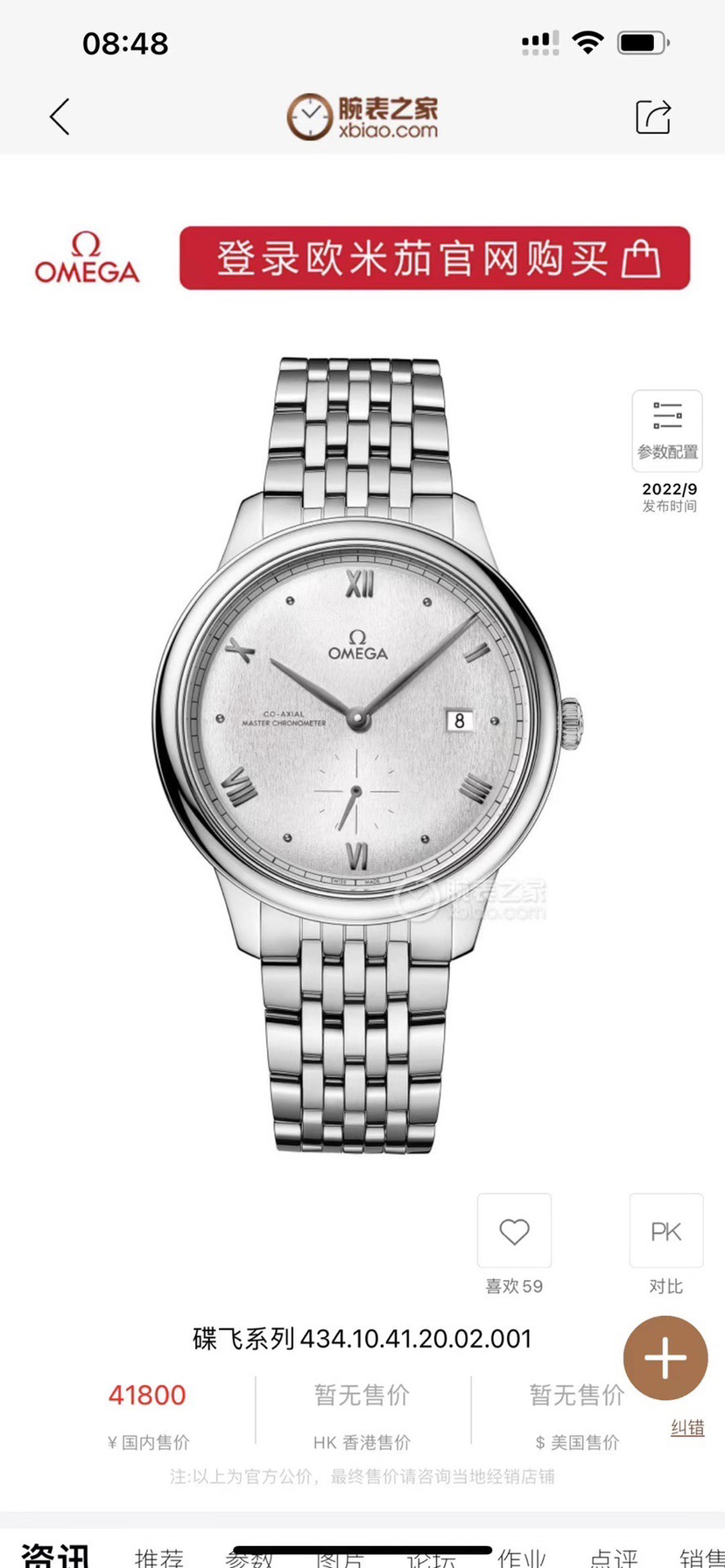 22年全套欧米茄蝶飞 型号:434.10.41.20.02.001,最新款蝶飞,41银色拱形盘面,放射纹,新款折叠扣上手舒适感更好,背透8802机芯,天文台验证 工价41800,现在好价