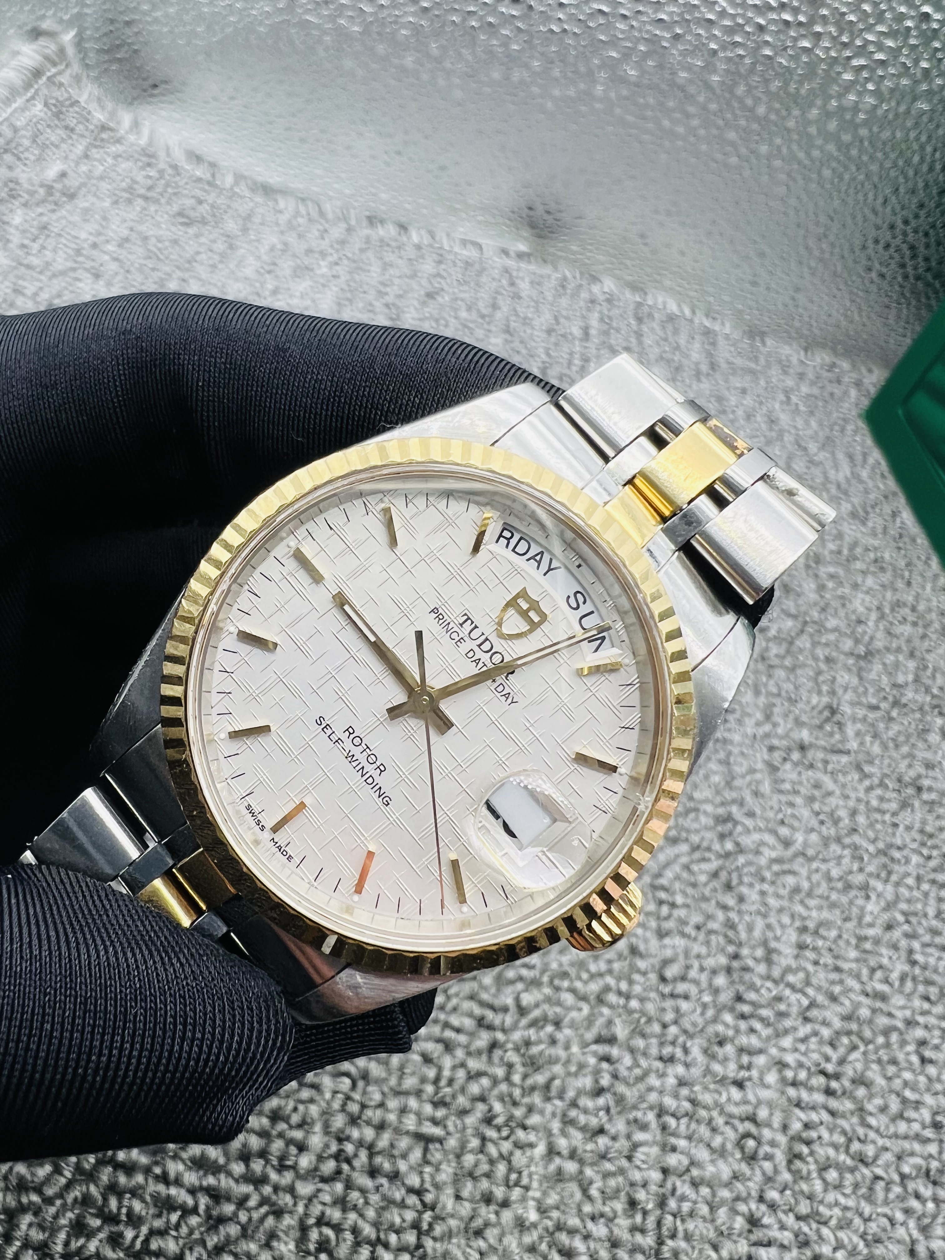 帝舵王子系列76213-62483 男士自动机械腕表,表径36毫米,18K金/精钢材质,白色表盘,日期星期显示,极品单表 公价28300 ——顾客需知———