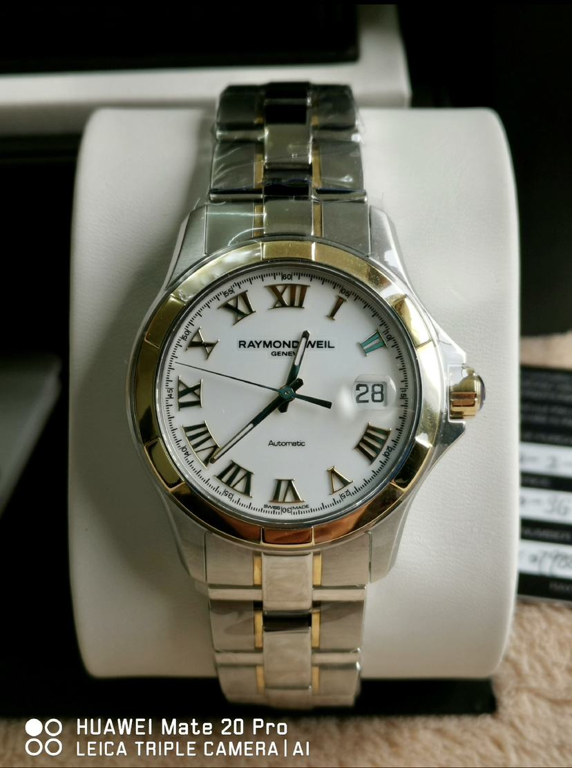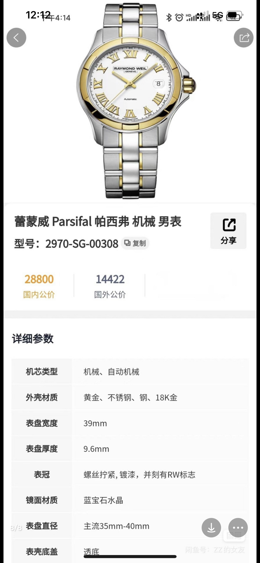 【介绍】:39表径,厚9.6,银白表盘,表圈及表带金色部分是18k金,防水100m,公价28800