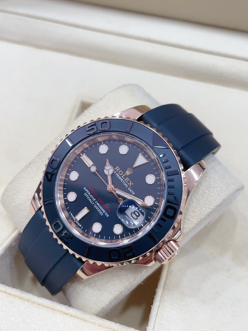劳力士游艇名仕型116655自动机械男士腕表,表径40mm ,搭载3135机芯 ,表壳18k玫瑰金双向旋转60分钟刻度外圈,配亚光黑色陶质字圈,磨光立体数字及刻度抗刮损蓝水晶,双重防反光小窗凸透镜放大日历18k玫瑰金,旋入式三扣锁三重防水系统,极品单表,专柜价203200 ——顾客需知———
