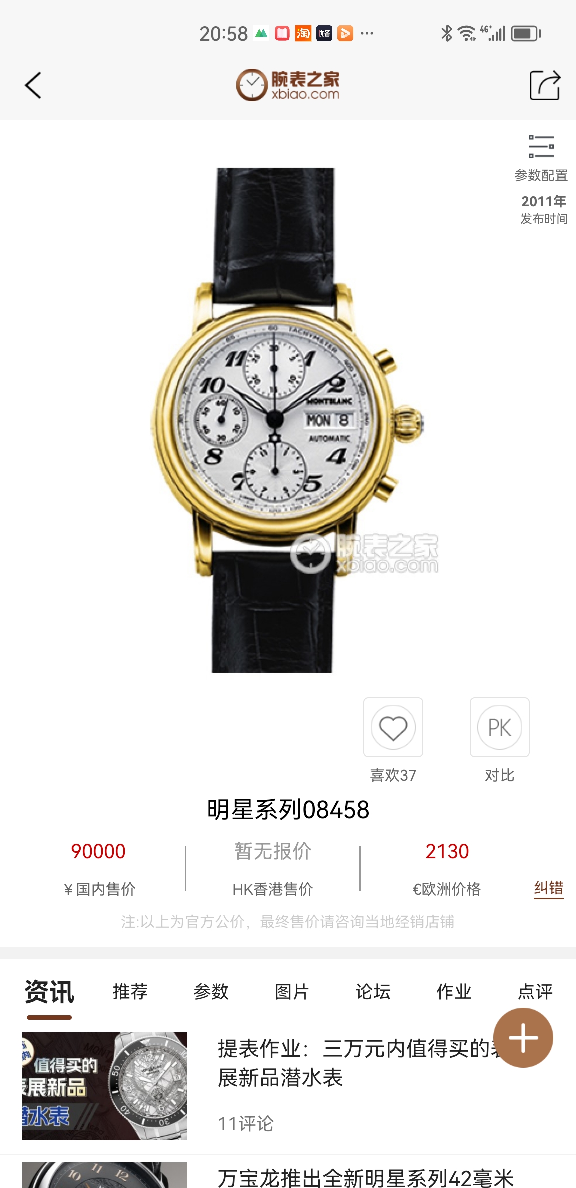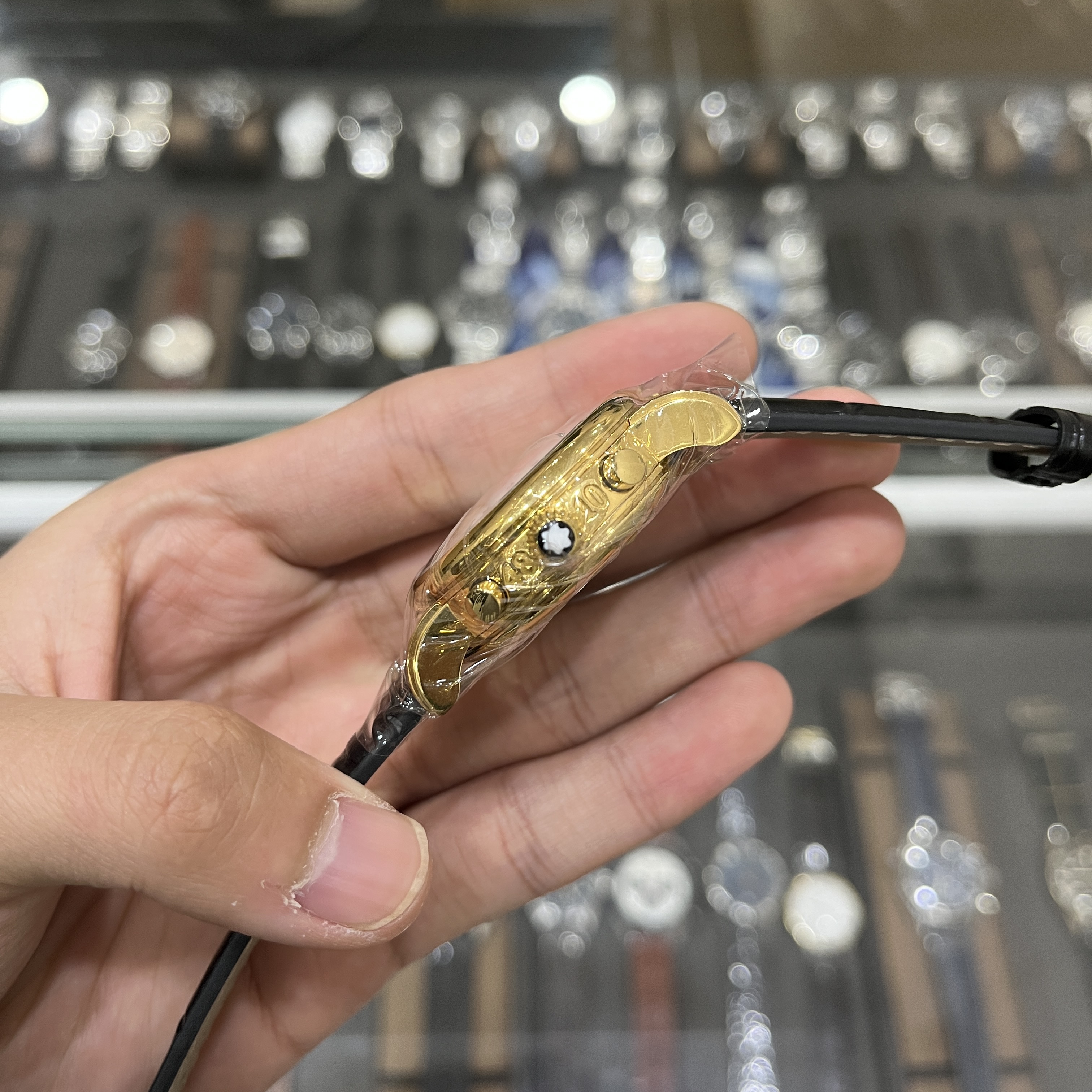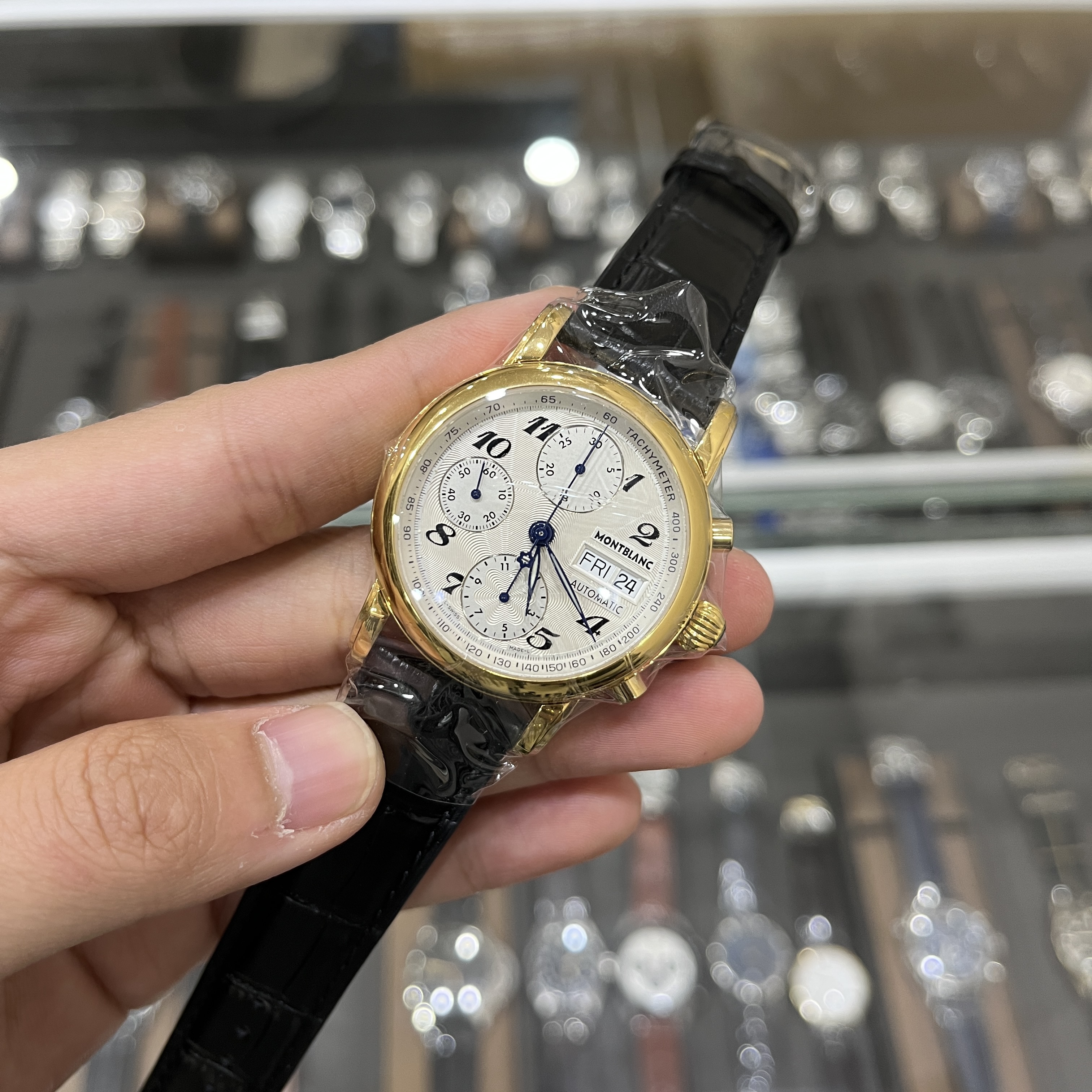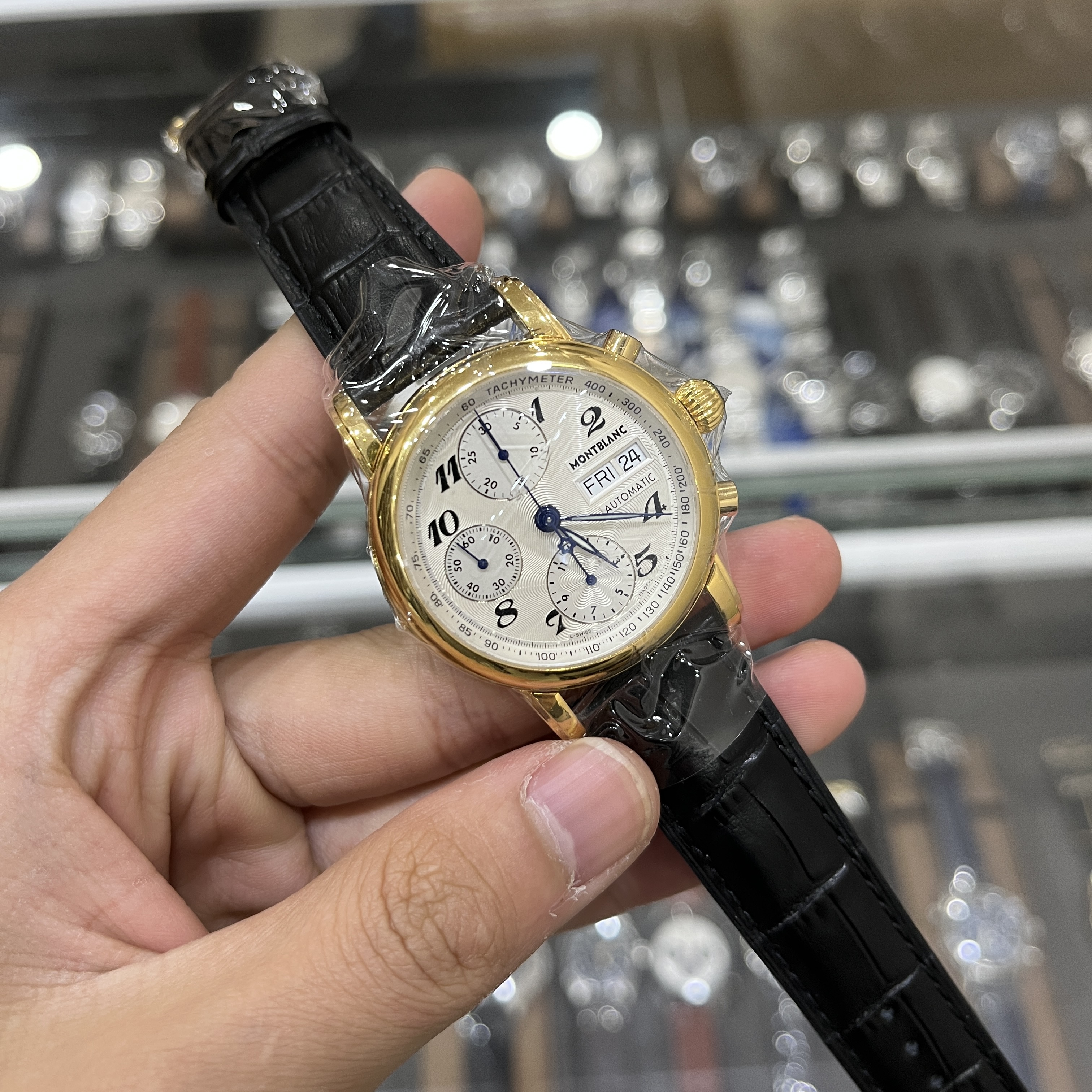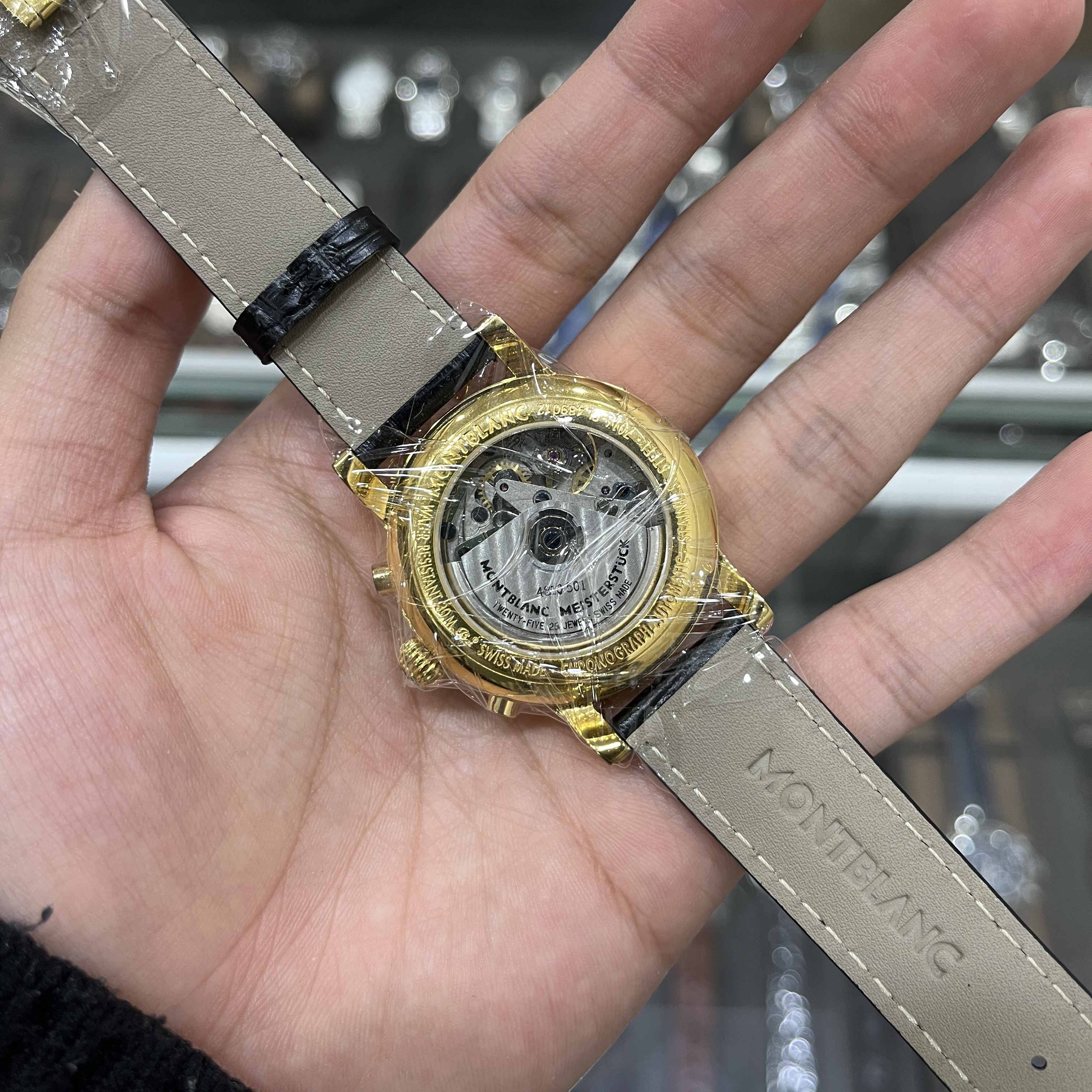 品牌:万宝龙 系列:明星系列 型号:08458。材质:镀金 镜面:蓝宝石玻璃 表盖:透底 表扣:折叠扣 表径:38mm 机芯类型:自动机械机芯 成色:95新 附件:单表 公价:90000 保修:一年 包回收