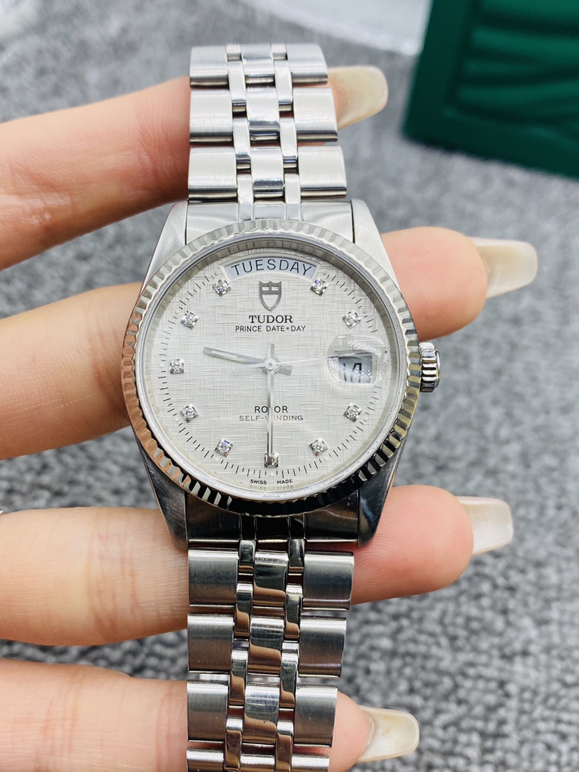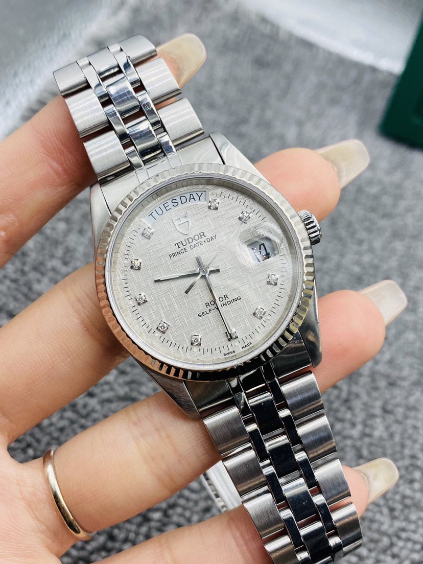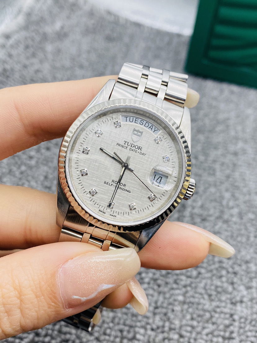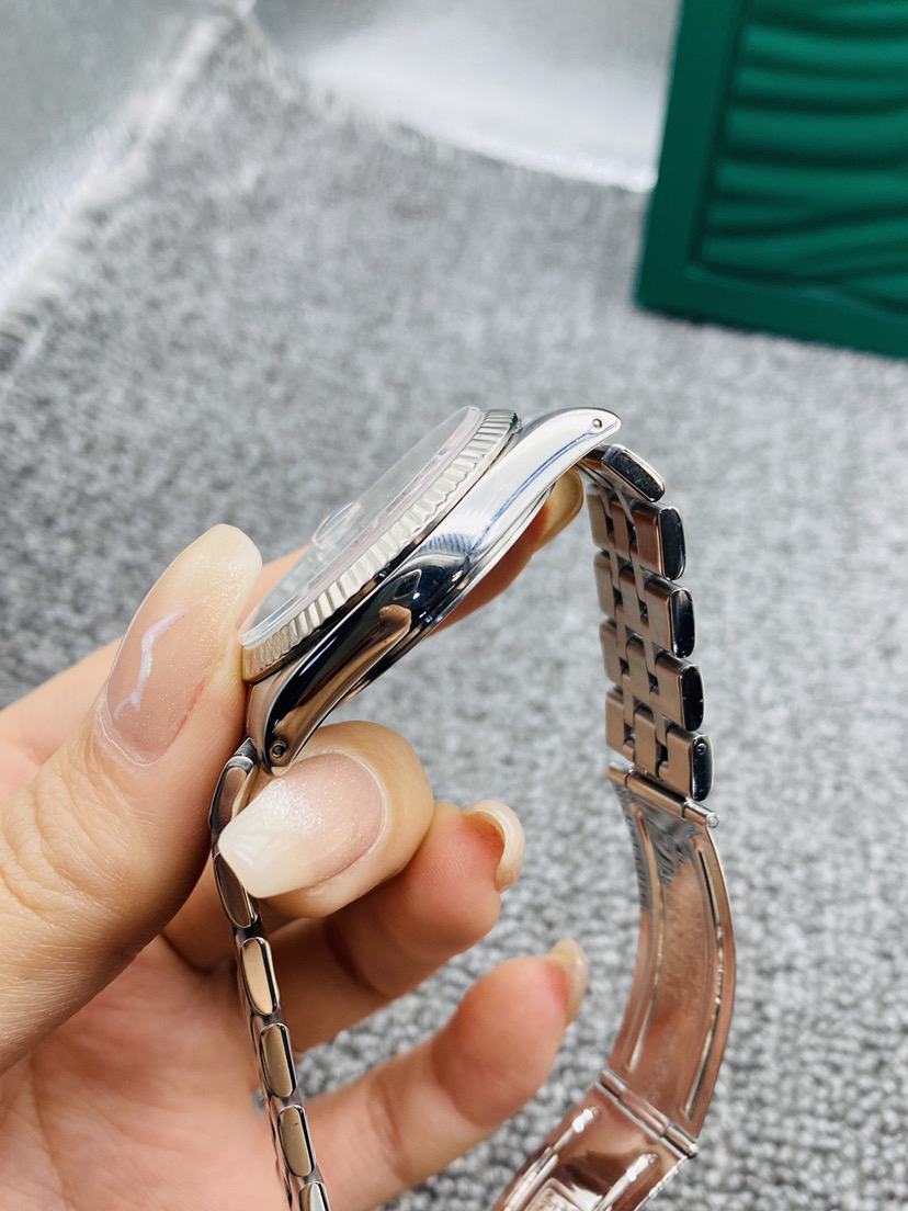 36表经成色完美如图热门款,精美银色丝绸面表盘,钻石刻度双日历显示简约大气,搭载全自动全自动机械机芯走时精准稳定原价31500———顾客需知———