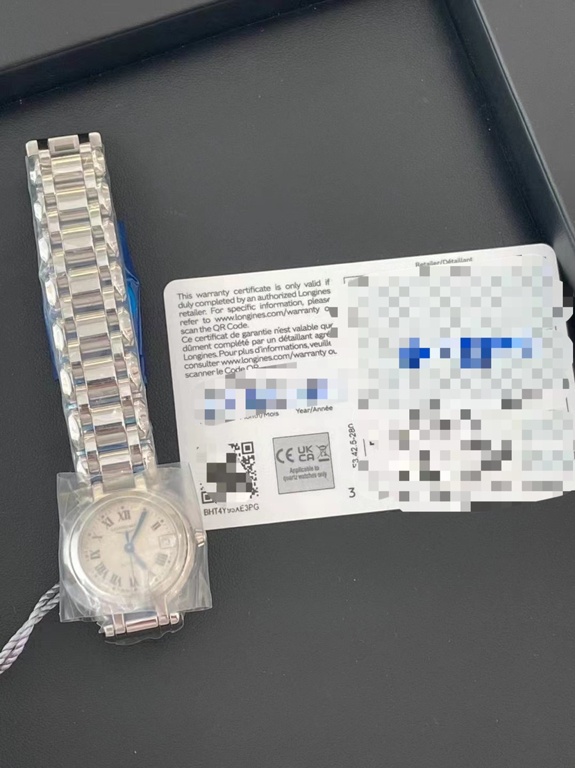浪琴优雅系列L8.111.4.71.6,女士自动机械腕表,表径:26.5mm,材质:精钢/钢带,银灰色盘面,黑色罗马刻度,蓝色指针、日期显示、 专柜价:13900,23年全套未使用品