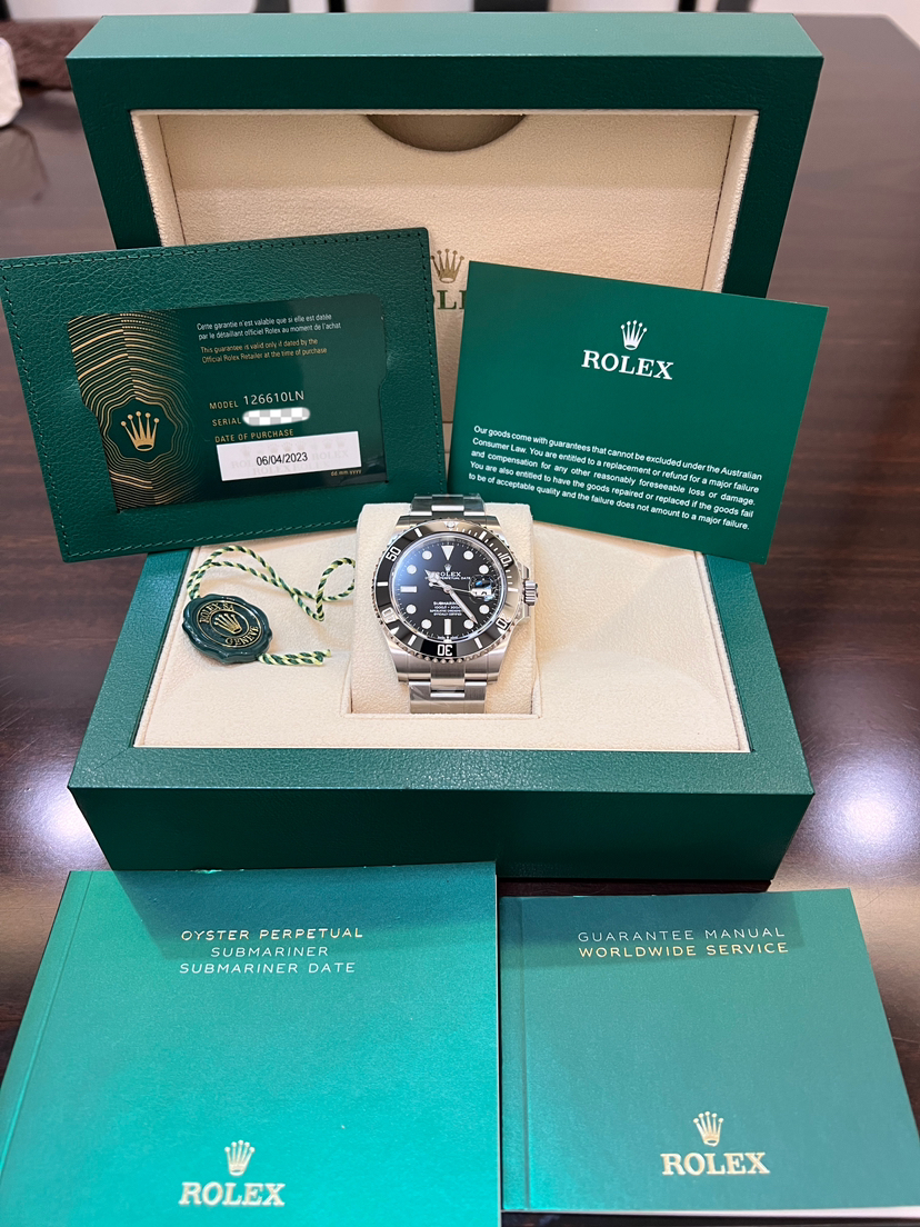 劳力士M126610LN-00001有历黑水鬼、23年全新全套、41毫米表径、公价:80300