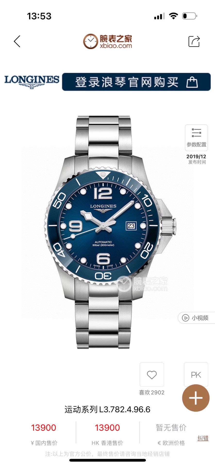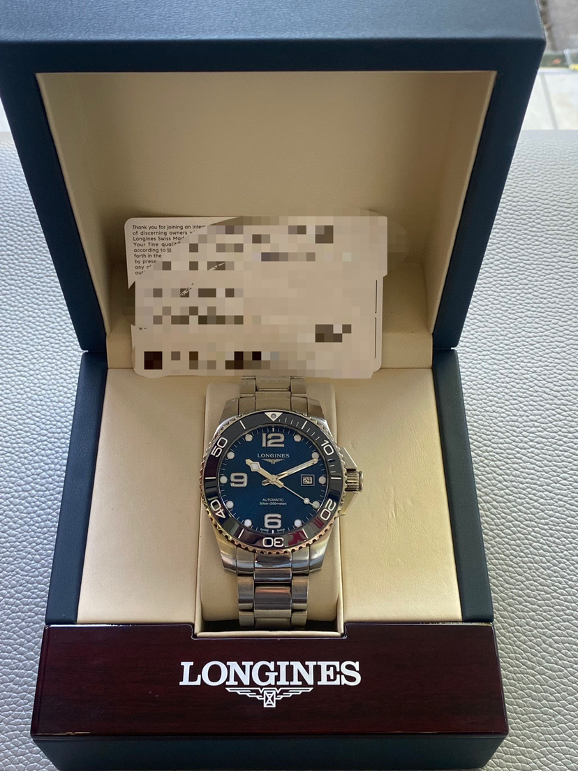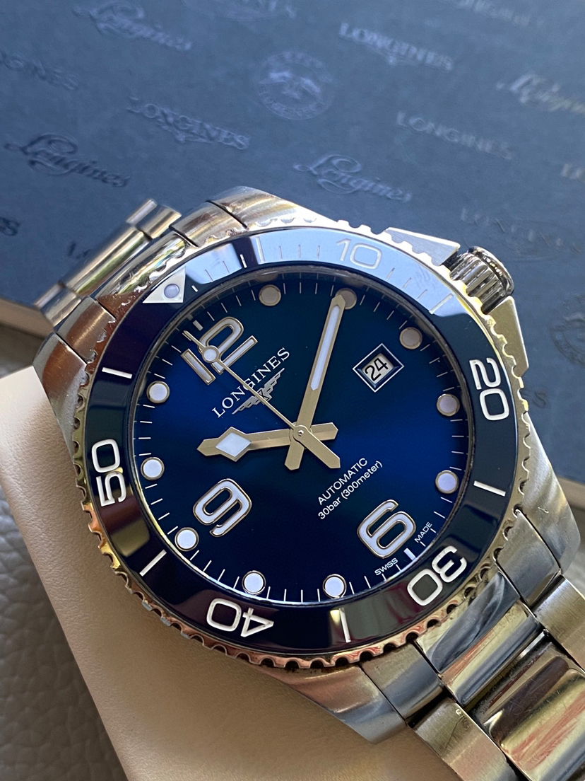 浪琴康卡斯系列L3.782.4.96.6男士自动机械男表,热门新款陶瓷圈,表径43毫米,大盘,热门蓝面款,2022年购入、有浪琴水鬼之称的新款康卡斯,原始品相 公价13900,现货好价