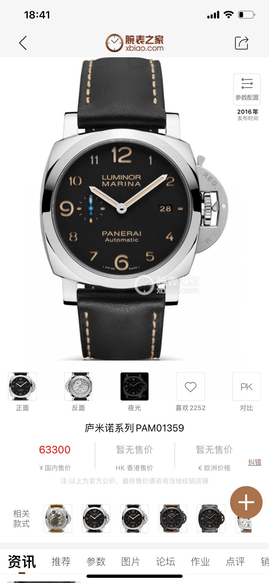 沛纳海/Panerai LUMINOR 型号:PAM01359 自动机芯 精钢 44MM 附件:极品单表 专柜价 63300