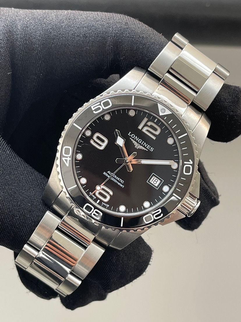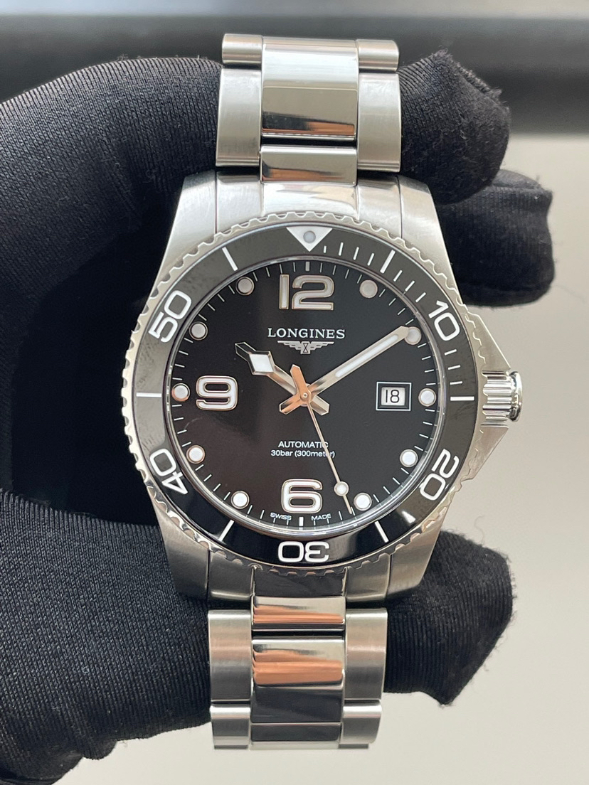 浪琴/Longines 康卡斯潜水系列 L3.781.4.56.6 自动机械机芯 精钢及陶瓷 Ø 41.00 mm 附件:21年全套 专柜价 13900