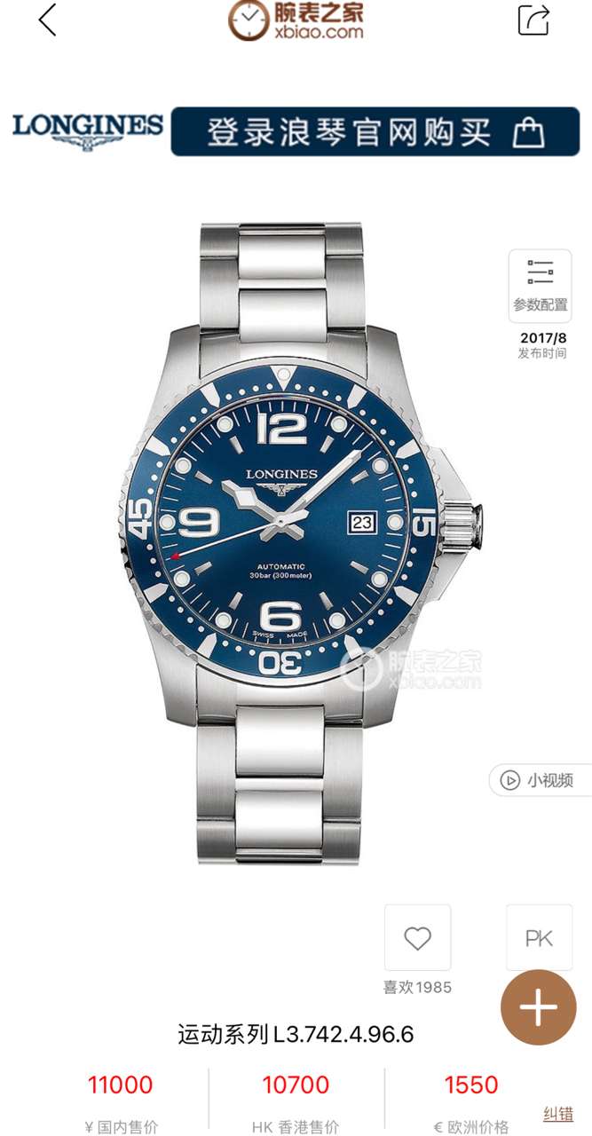 浪琴康卡斯系列L3.742.4.96.6男士自动机械腕表,公价11000元,表径41mm,全套附件齐全,成色95新,最美蓝盘,搭载888机芯,走时精准稳定 热门保值款
