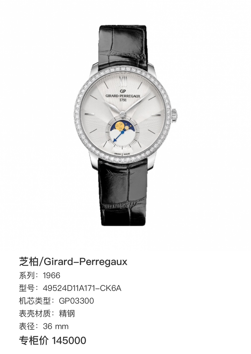 自动机械女生 精钢 表径36 mm 附件:保卡 盒子 专柜价 145000