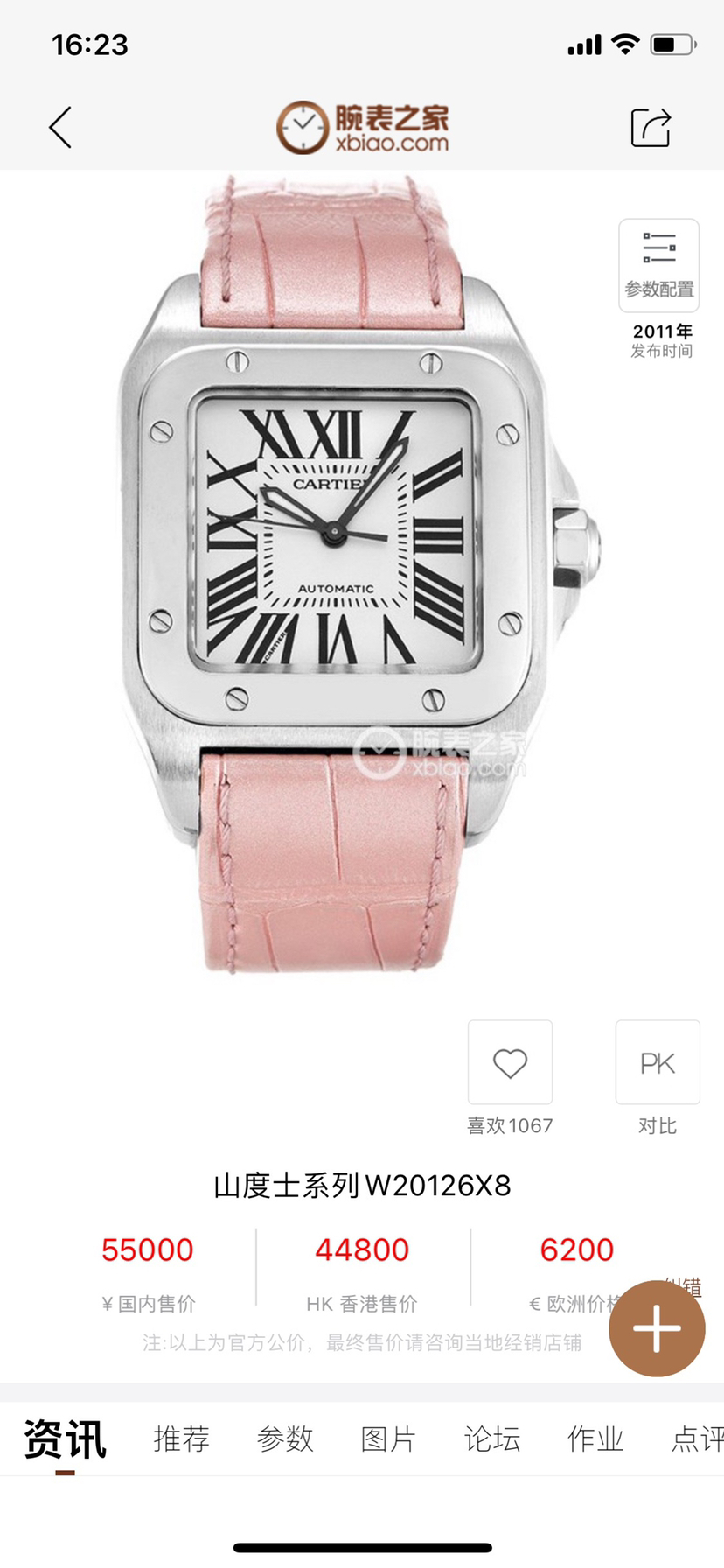 卡地亚/Cartier 山度士系列 W20126X8 自动机械机芯 精钢 44.2 x 35.6毫米 附件:单表 后镶钻 专柜价 :55000