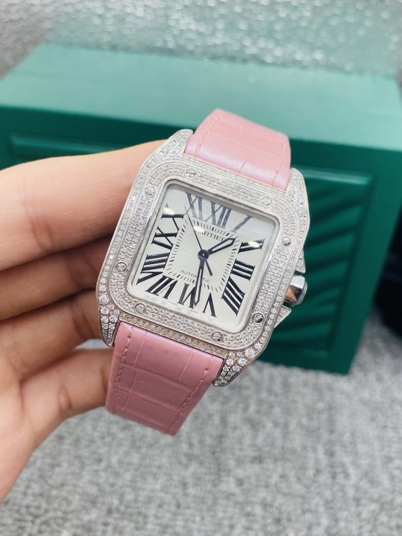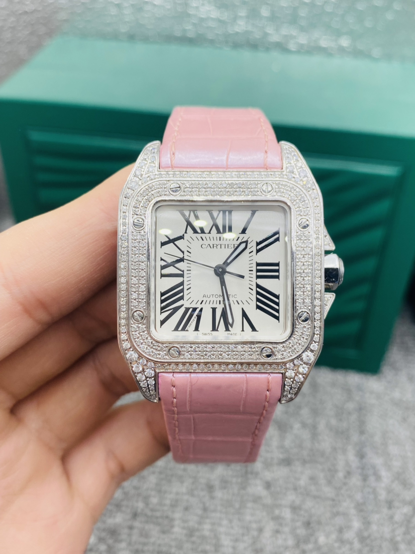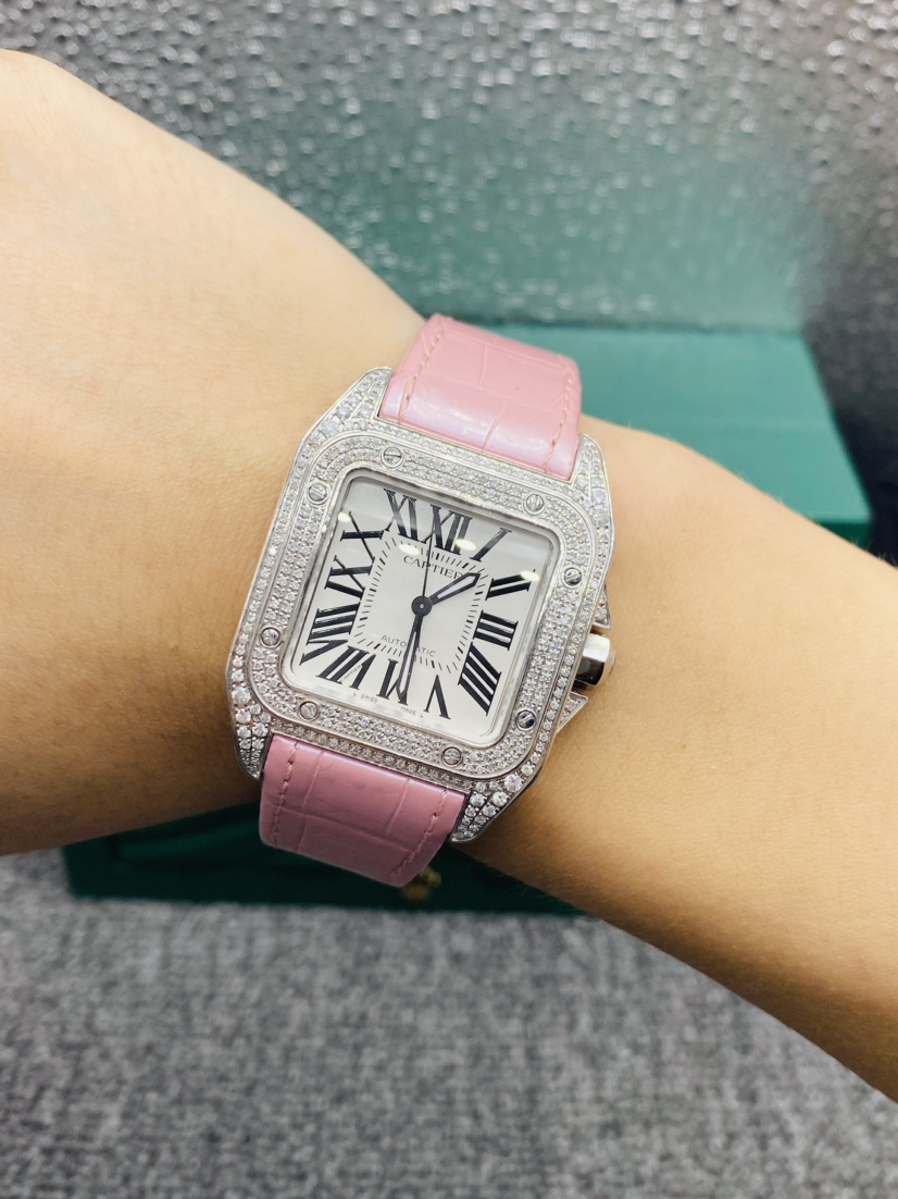 卡地亚/Cartier 山度士系列 型号:W20126X8 自动机械机芯 精钢 44.2 x 35.6毫米 附件:单表 后镶钻 专柜价 :55000