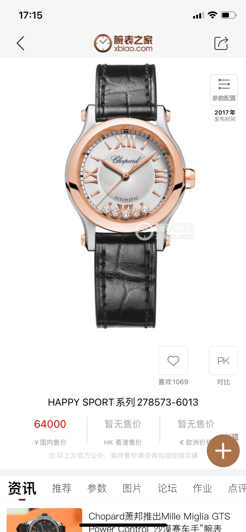萧邦Happy Sport278573-6013机械女性