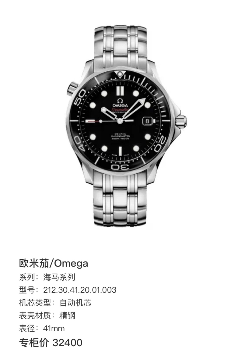欧米茄/Omega 海马系列 212.30.41.20.01.003 自动机芯 精钢 41mm 专柜价 32400