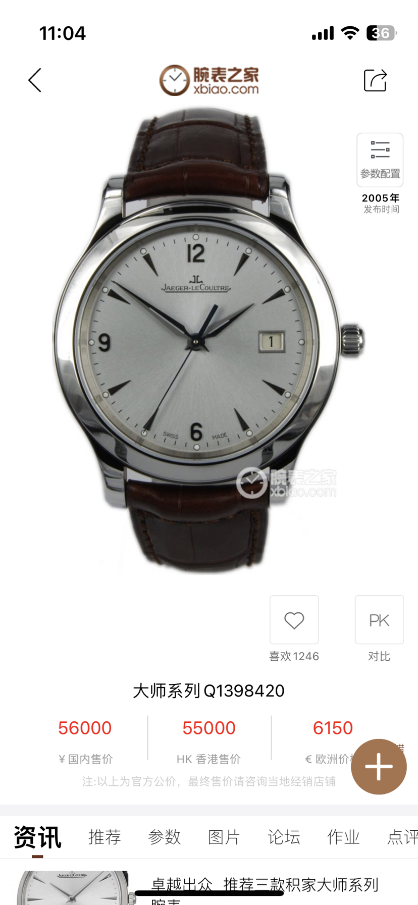 积家大师系列1398420自动机械男士腕表 精钢材质 40MM表径 蓝钢秒针 日期显示 自动机械机芯22K金边摆陀 简洁三针 公价56000 现货单表好价