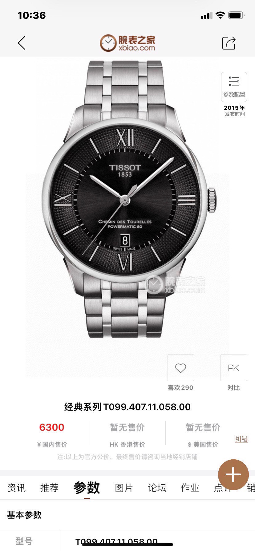 天梭经典系列T099.407.11.058.00 自动机械男士腕表 表径42mm 专柜价6300 现货全套好价