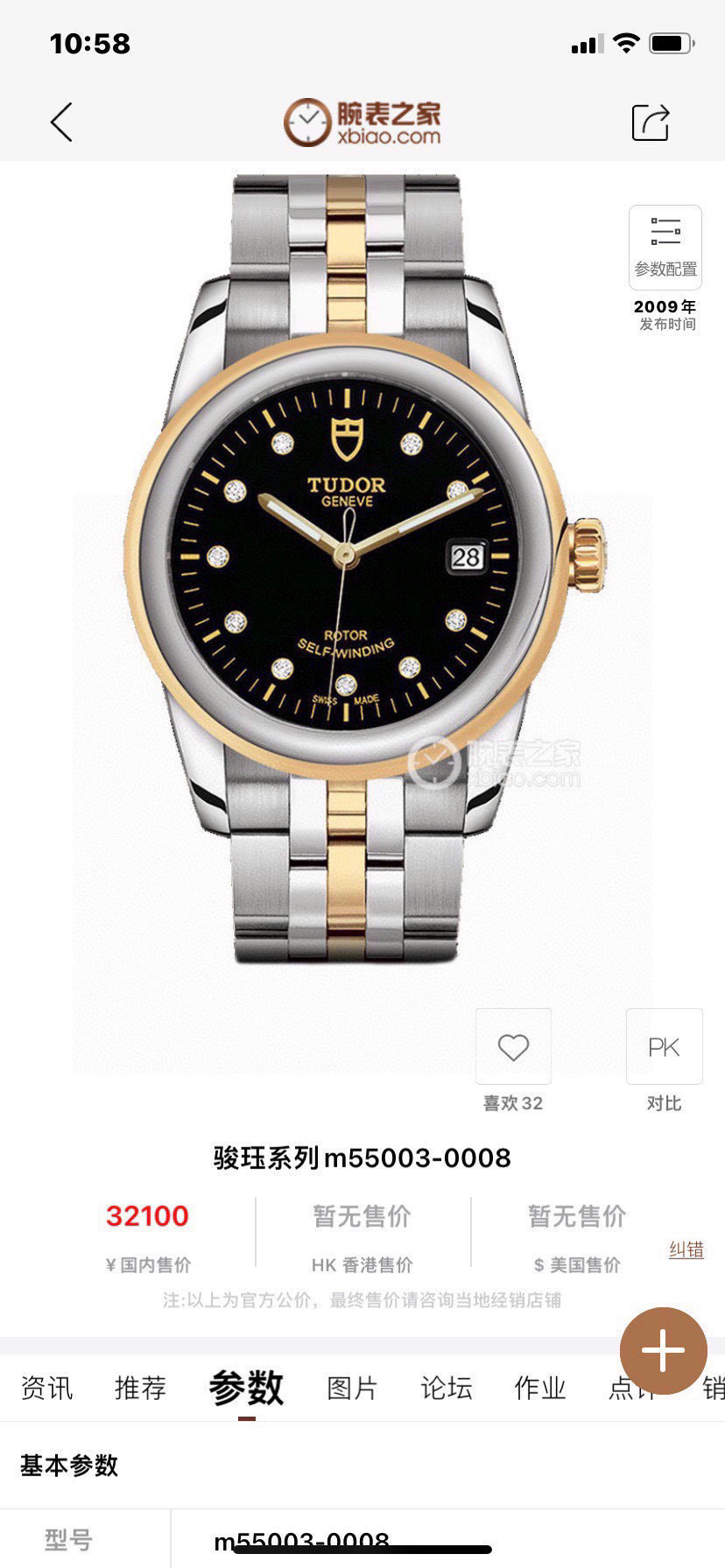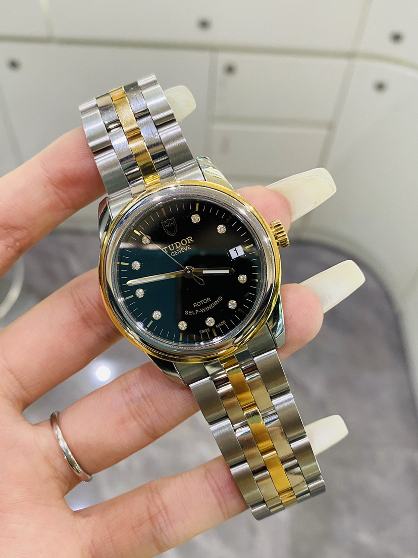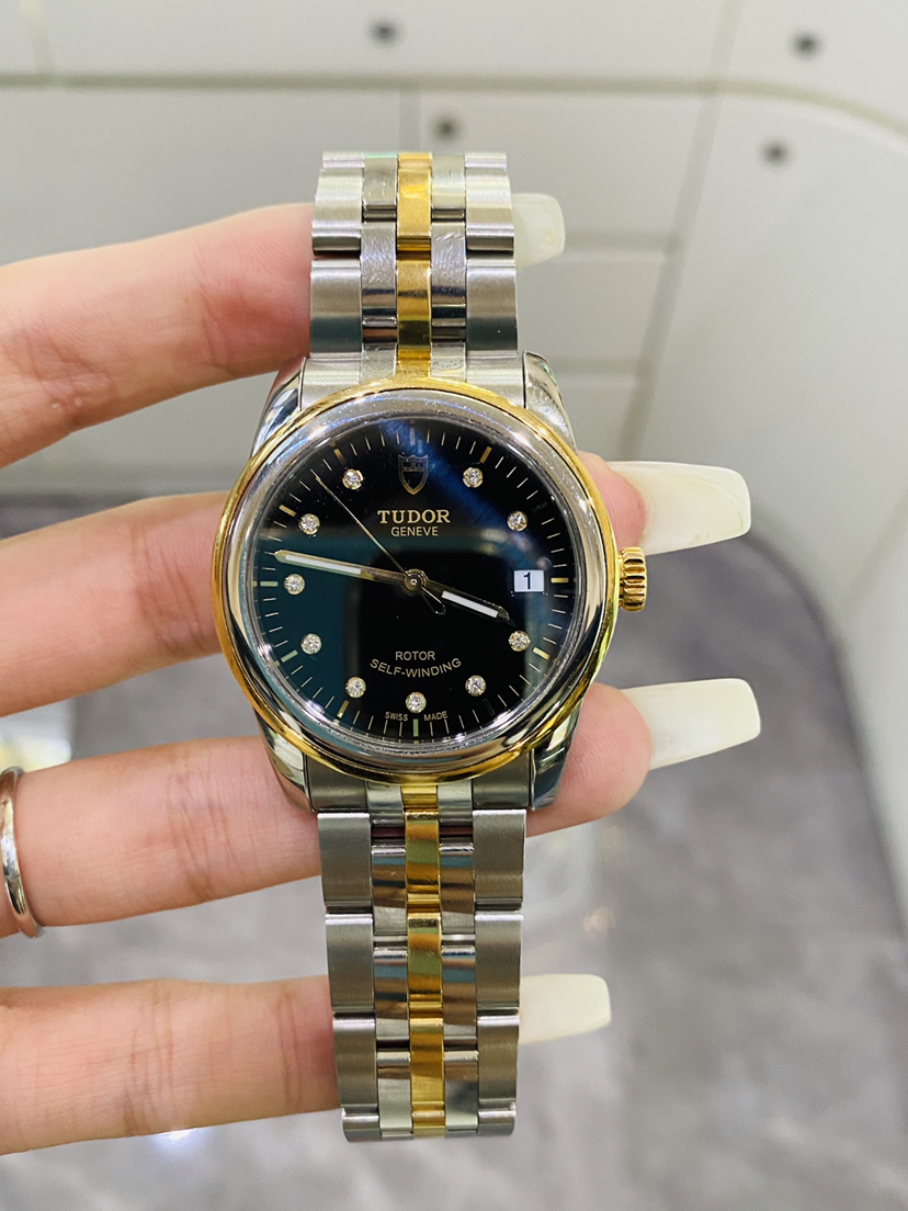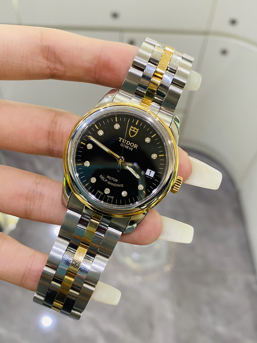帝舵m55003-0008骏珏系列男款自动机械表,间18k黄金,黑面钻刻,表径36单表无附件,原价32100