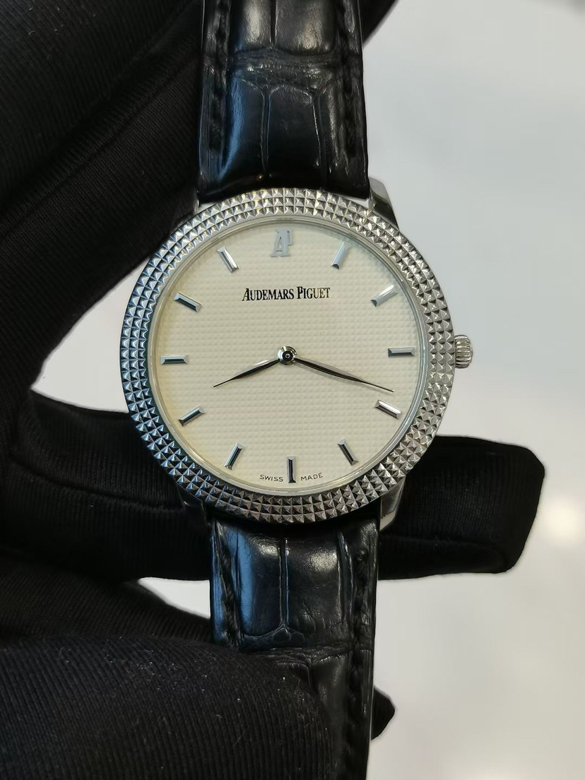 爱彼经典系列15163BC.GG.A002CR01 手动机械表 背透 18K白金材质 针扣 13年全套(盒子保卡说明书)参考公价:169000元