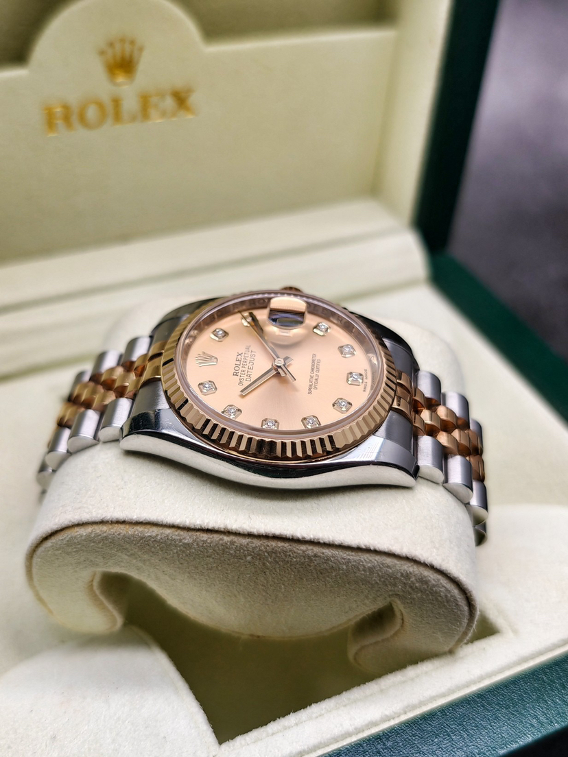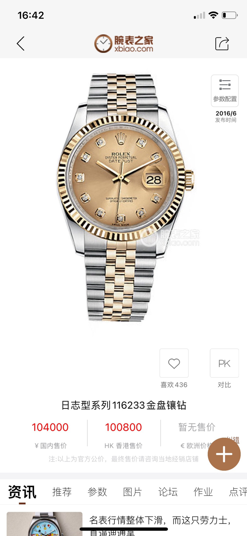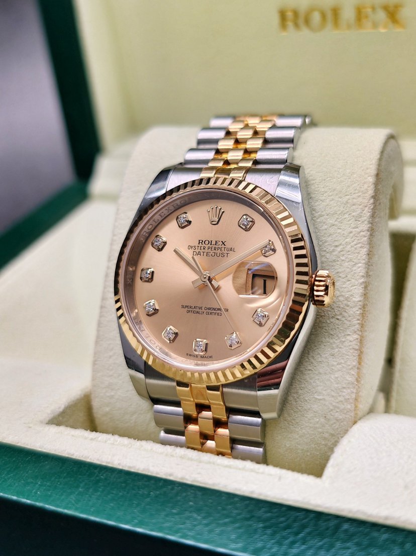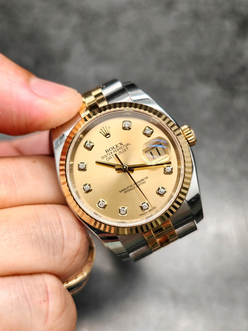 劳力士 日志型 型号:M116233 自动机械机芯 黄金钢(904L不锈钢和18ct黄金的组合) 36毫米 附件:全套 专柜价:104000