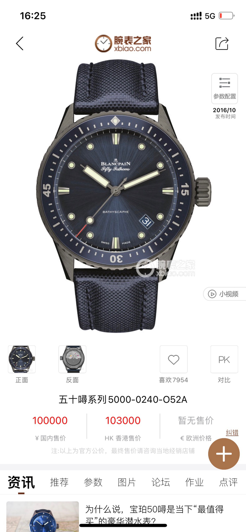 又名蓝陶 爆款里的战斗机上手超帅,蓝盘,表径43.6mm,防水深度300m,专柜10万,23年全套未使用品近期卡,