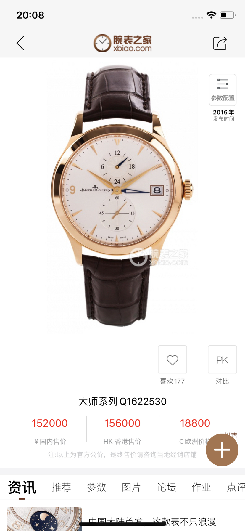 积家-大师,Q1622530,单表无配件,刚刚翻新外观机芯保养。40毫米玫瑰金自动机械,两地时。公价152000