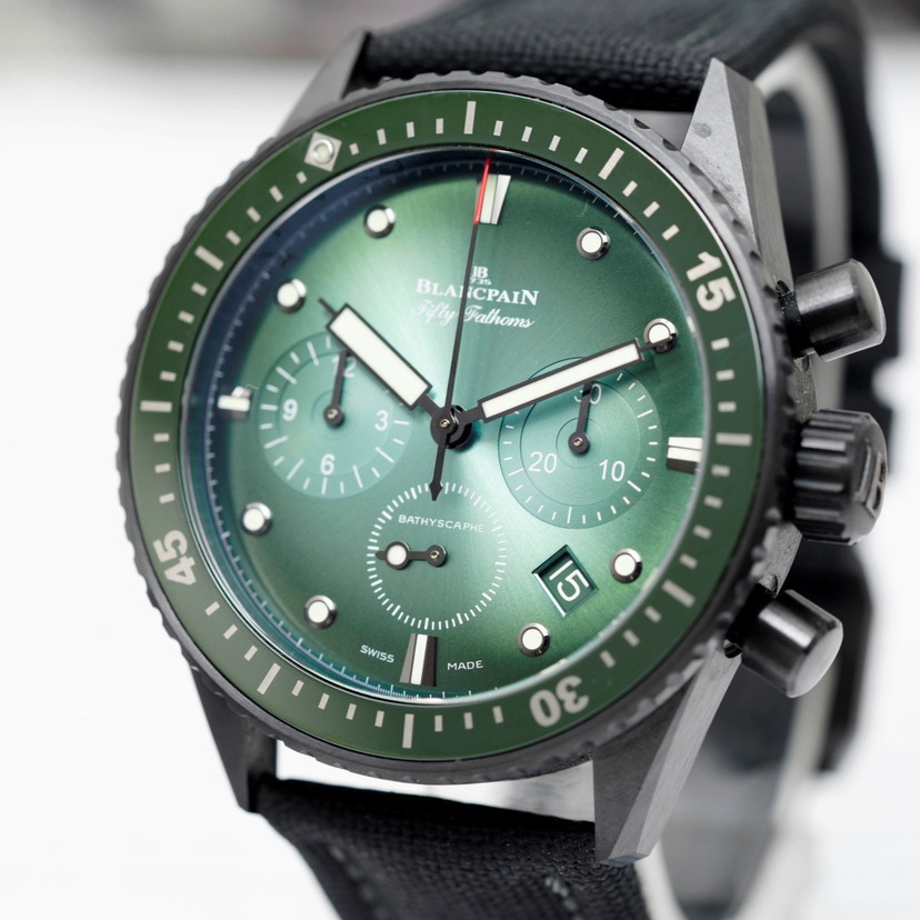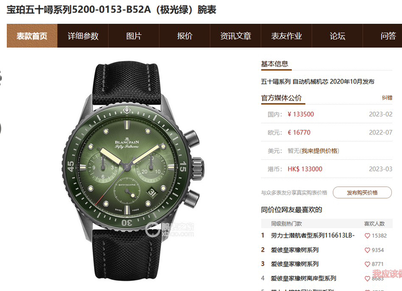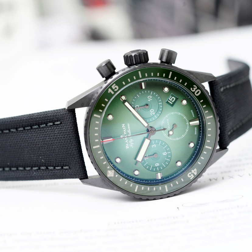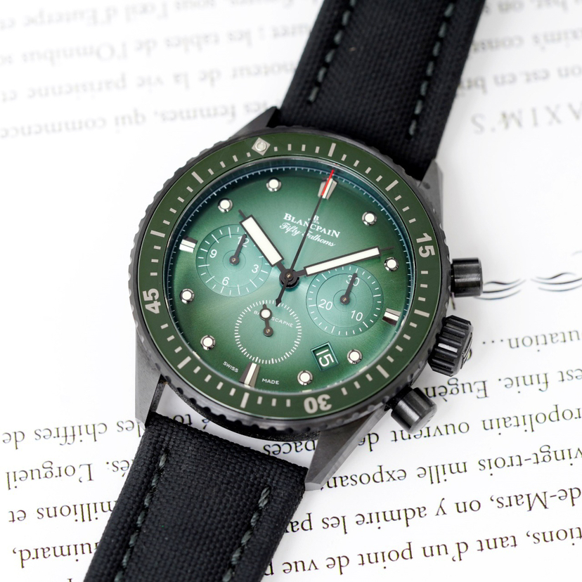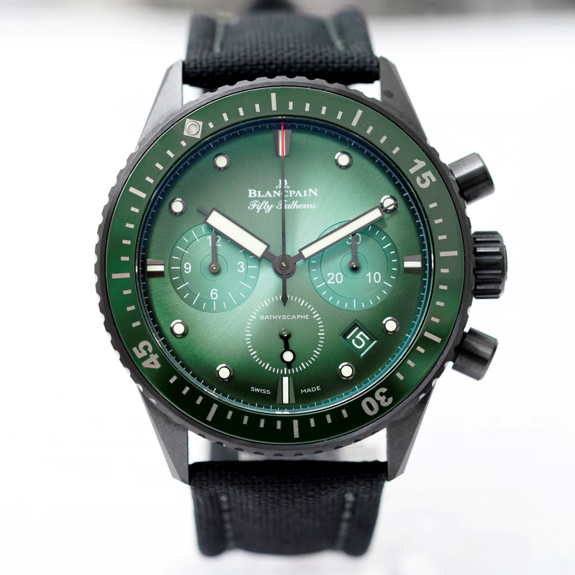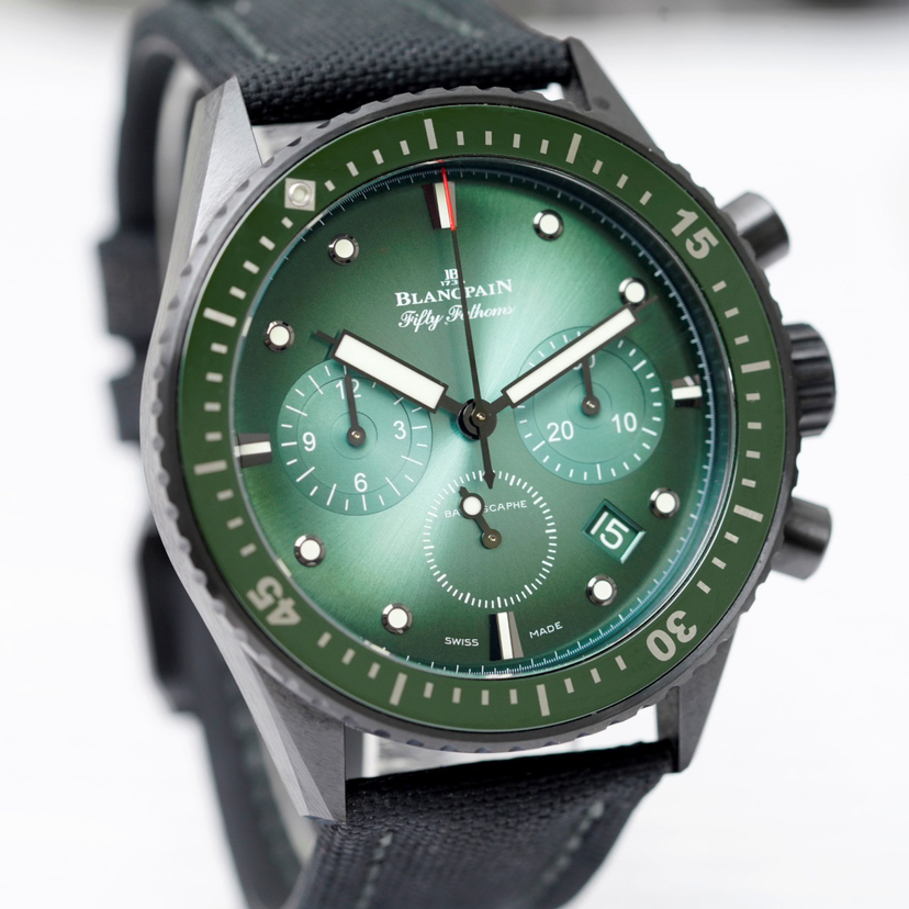 宝珀五十噚系列大热门5200-0153-B52A(极光绿),黑色陶瓷,自动机械,43.6mm表径,公价133500元,现货好价