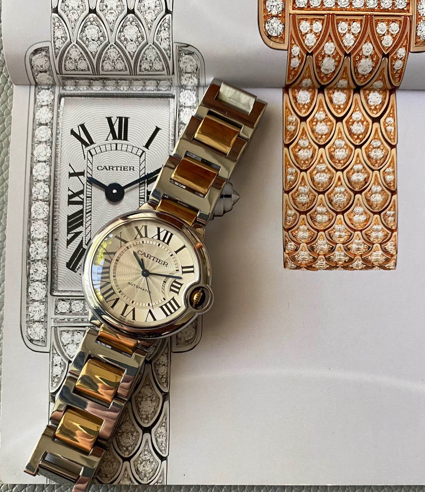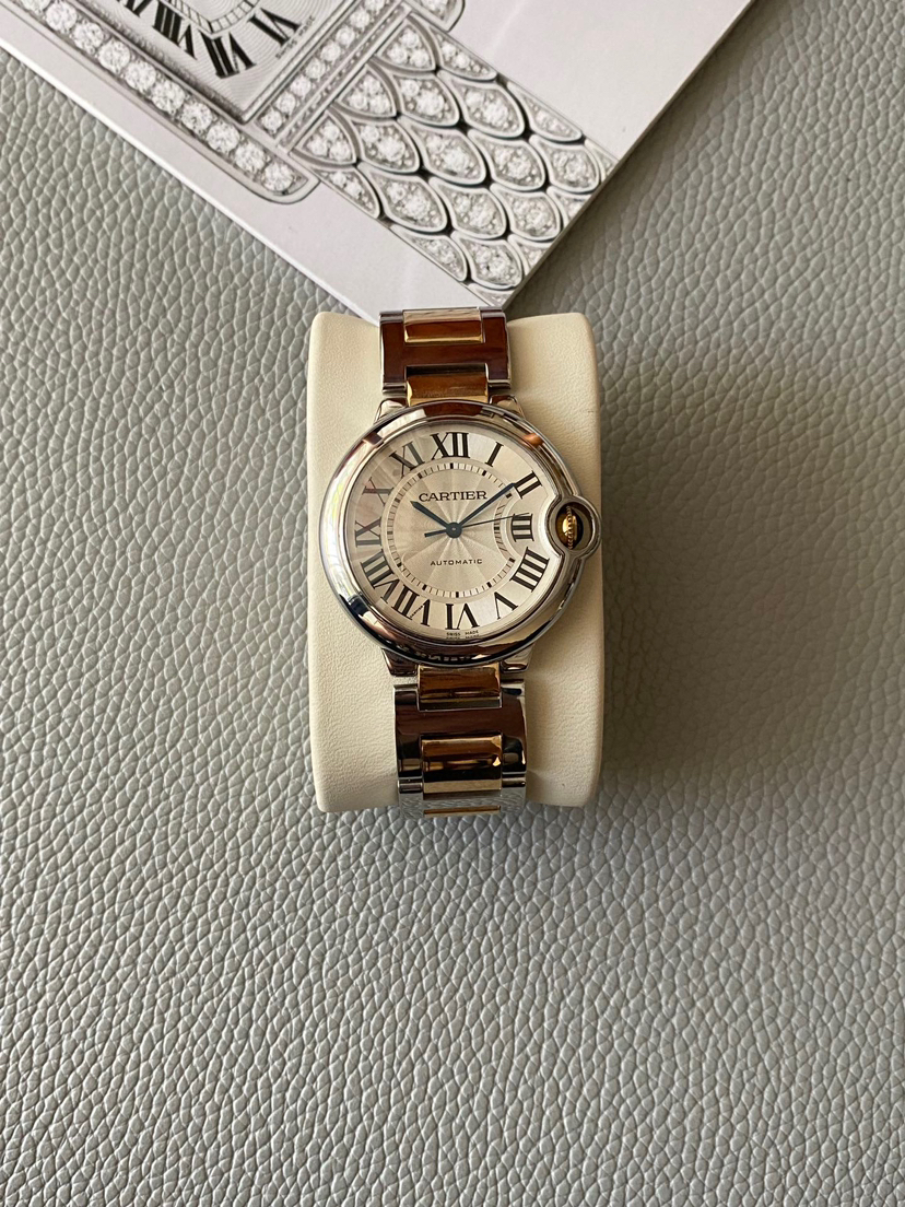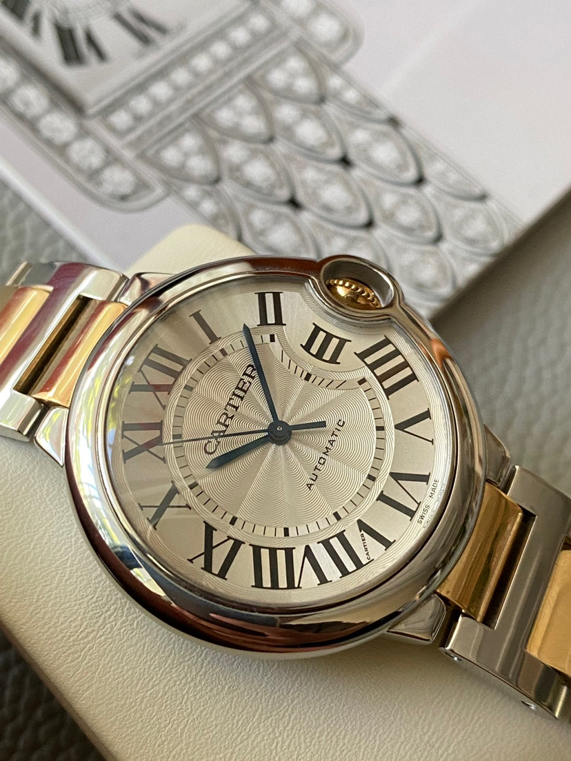 【2年8折回收,5年7折回收兜底,8年机芯质保】卡地亚蓝气球系列 W6920047 自动机械腕表 18K间金中性腕表 36表径 男女通用款 罗马数字刻度 剑型指针 折叠扣 专柜售价72500元