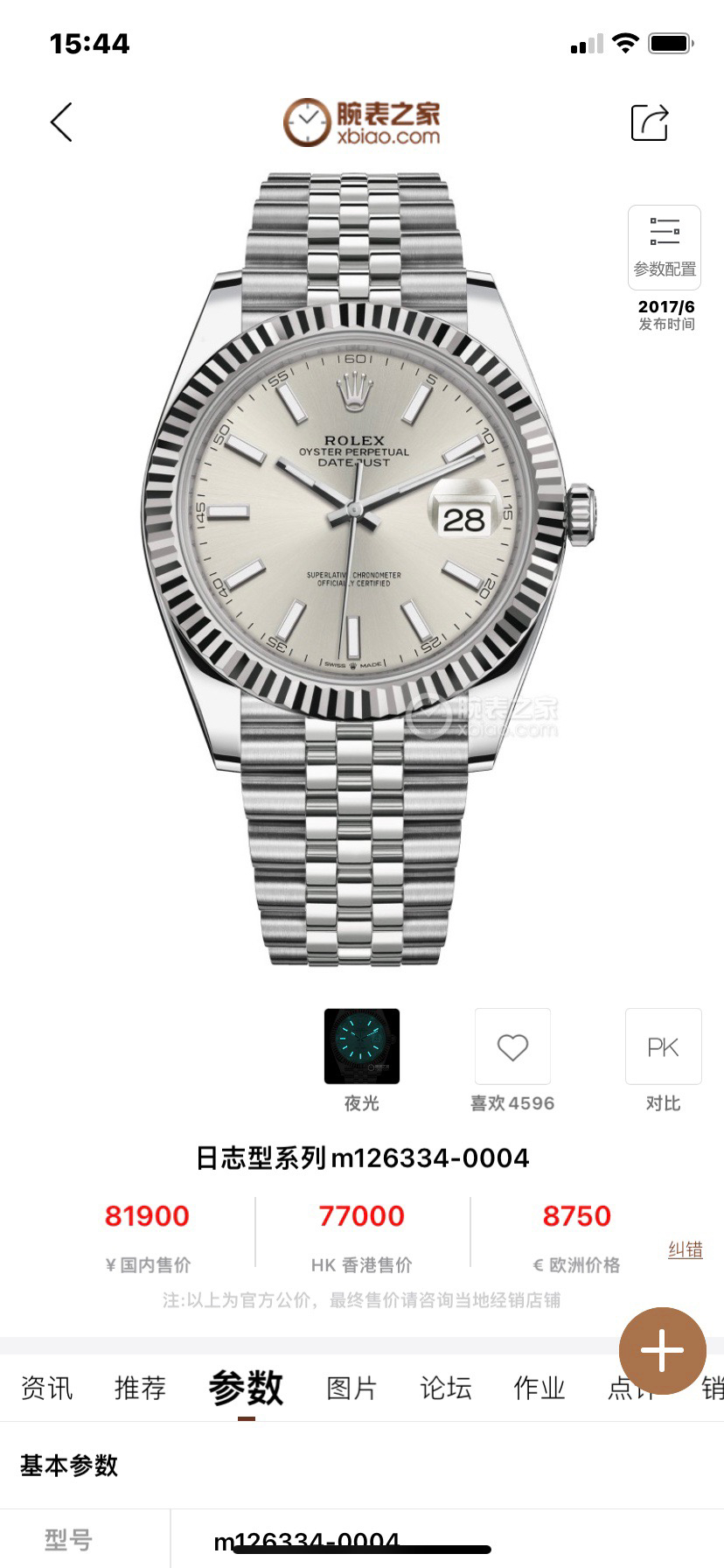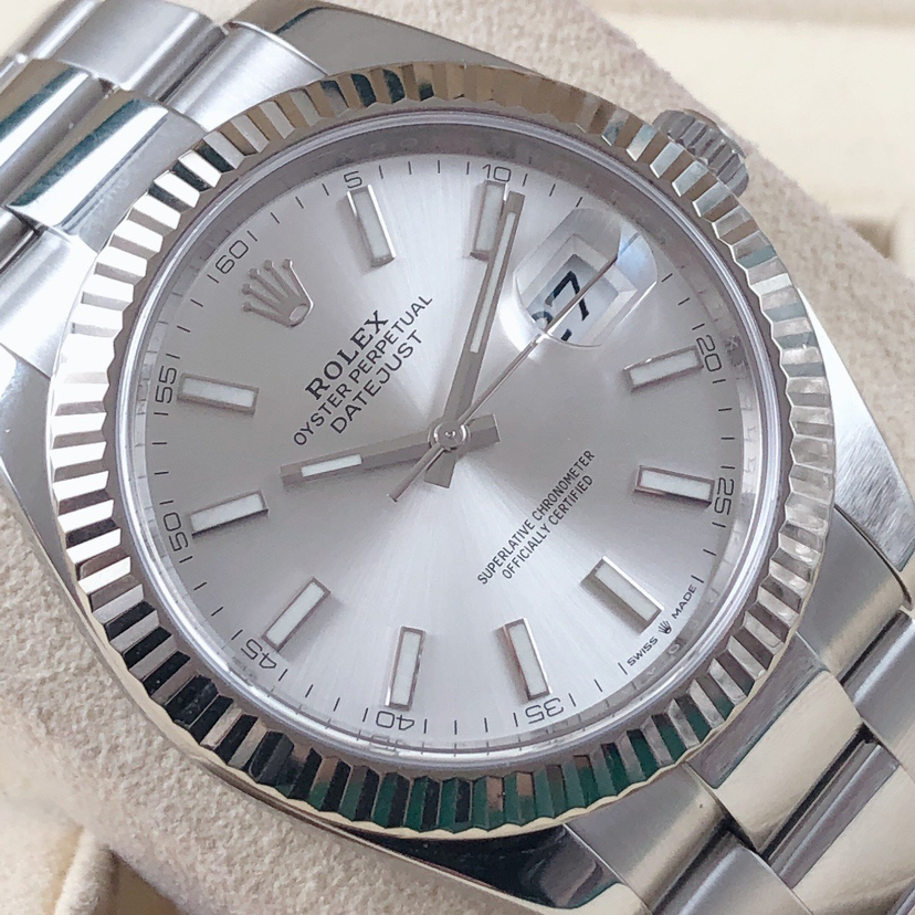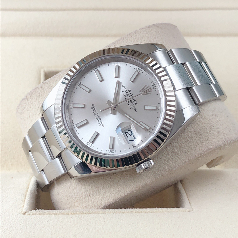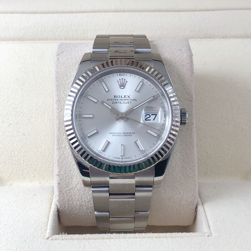 劳力士m126334-0004日志型男士自动机械表,18k白金牙圈,条刻银灰面,表径41mm,公价81900,现全套好价