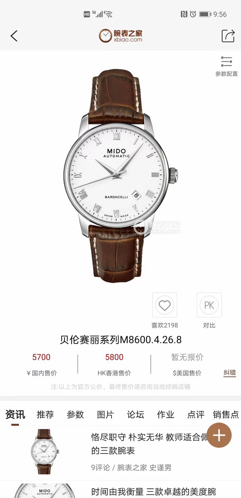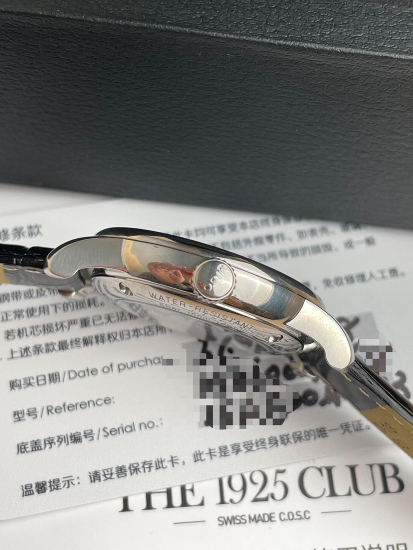腕表特征:男士自动机械腕表,表径38mm,日期显示功能,罗马数字刻度,专柜价:5700