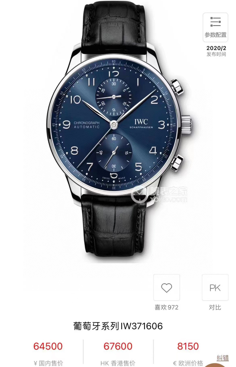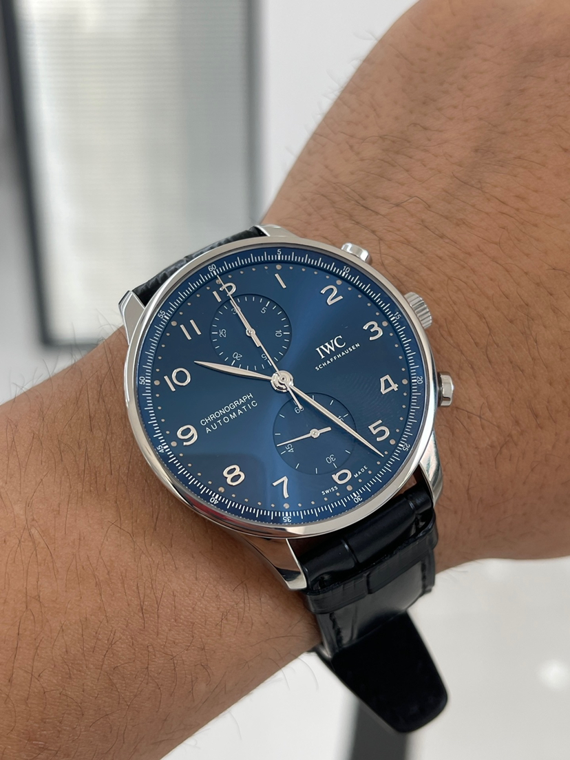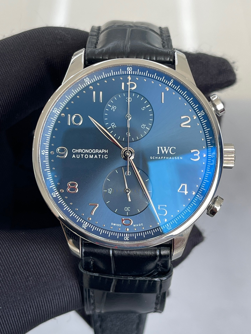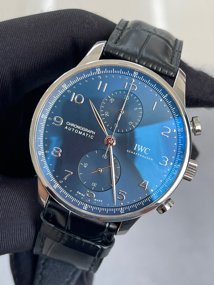 全套万国葡萄牙系列 IW371606 男士自动机械腕表 表径41毫米 蓝色表盘 最新款背透 带计时功能 八年延保,公价64500