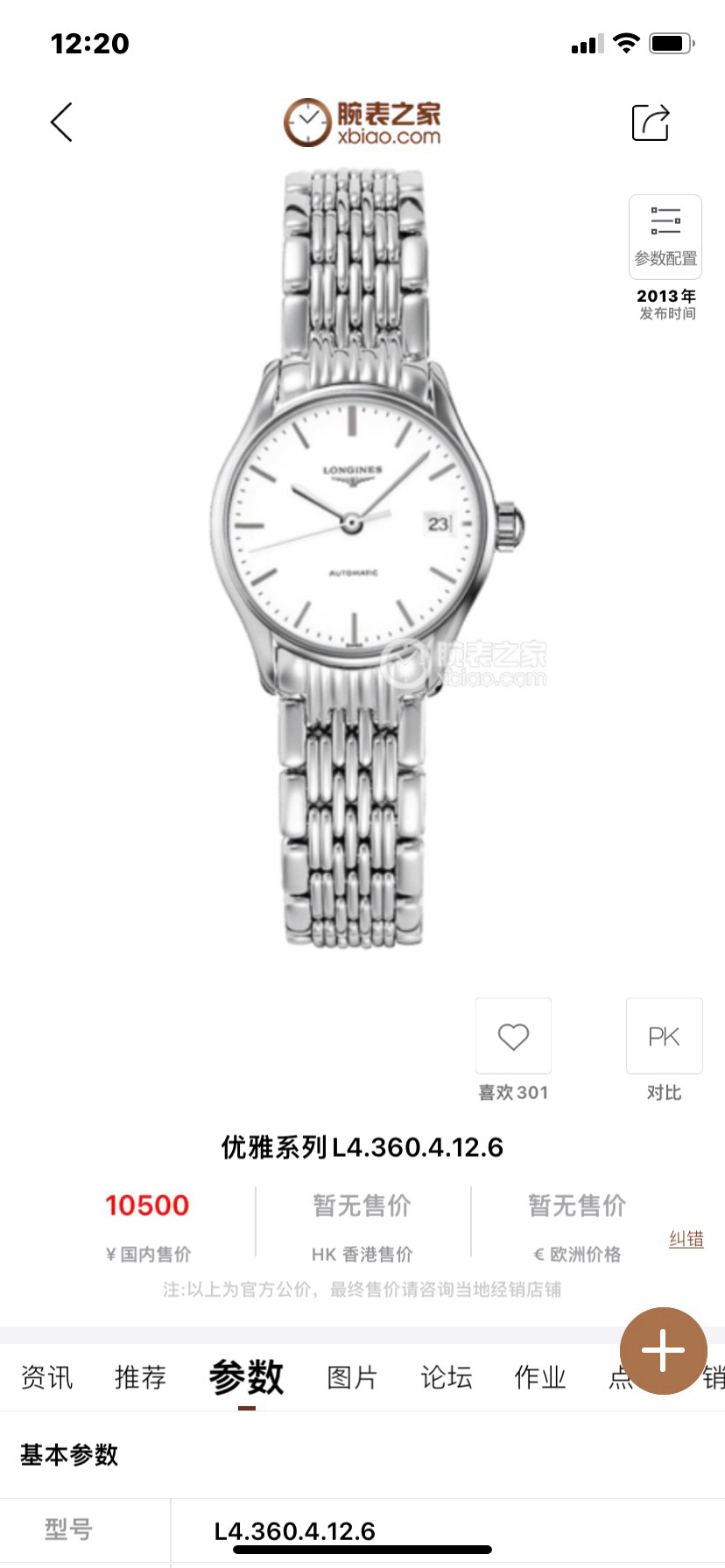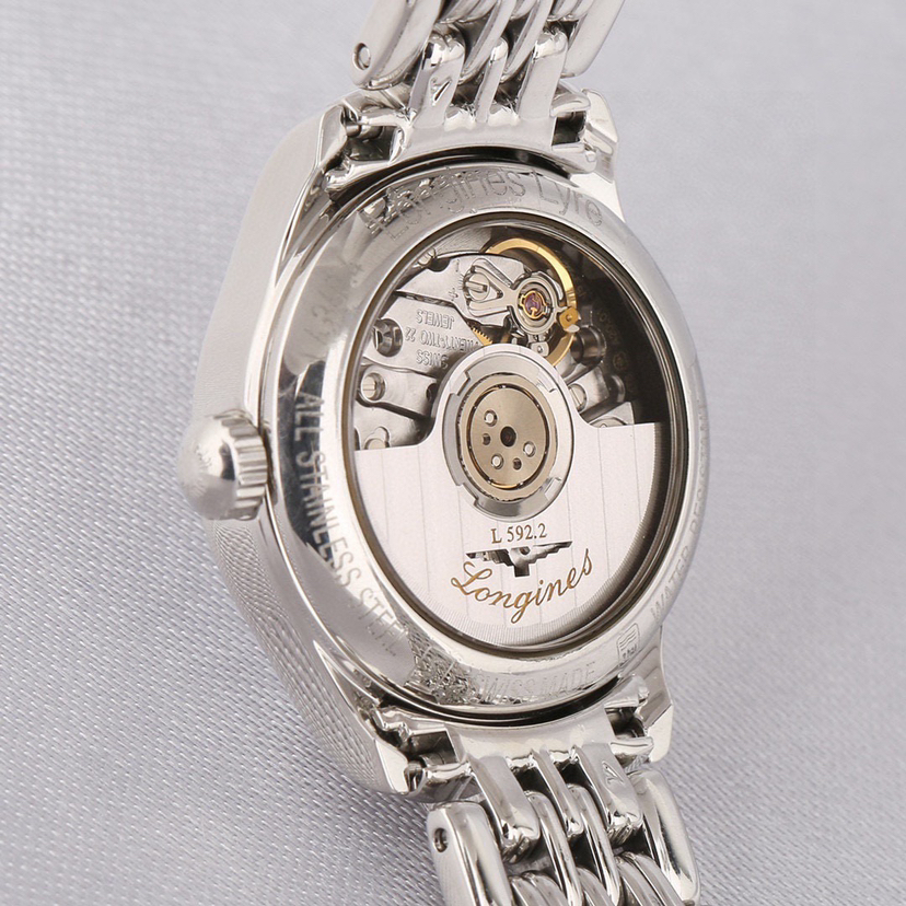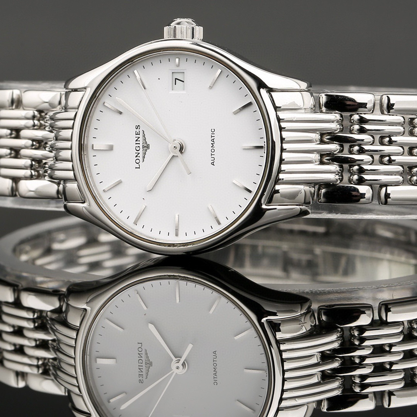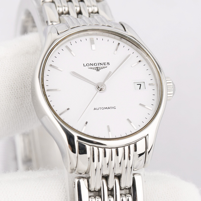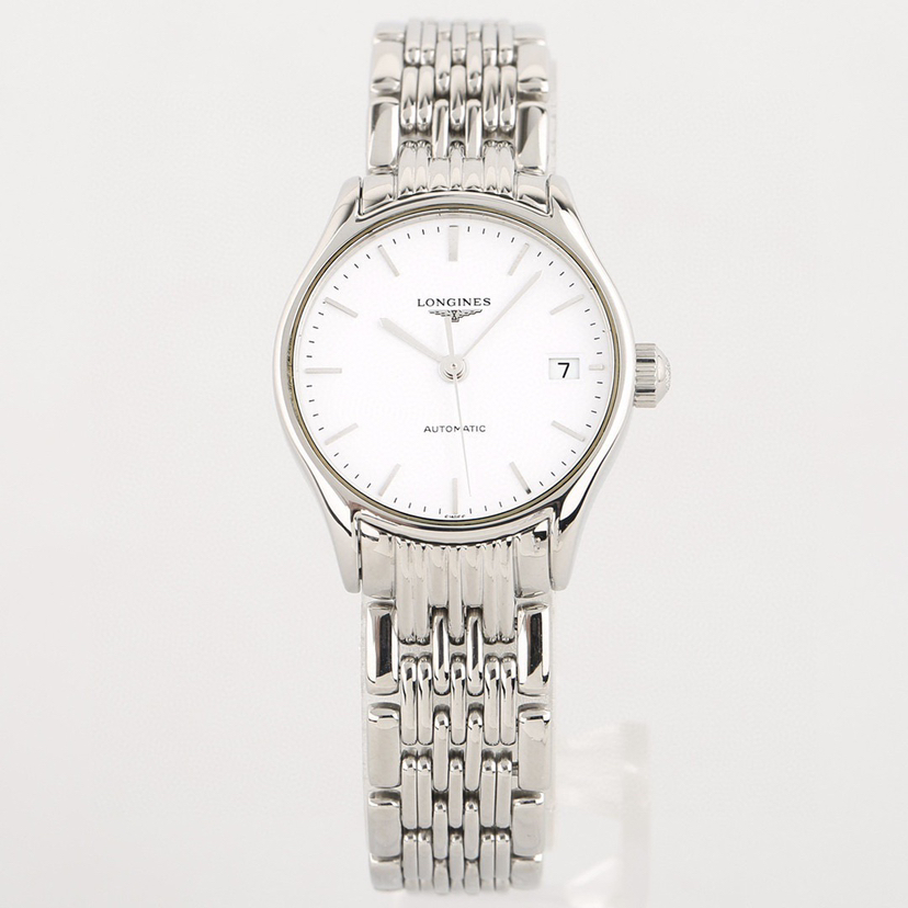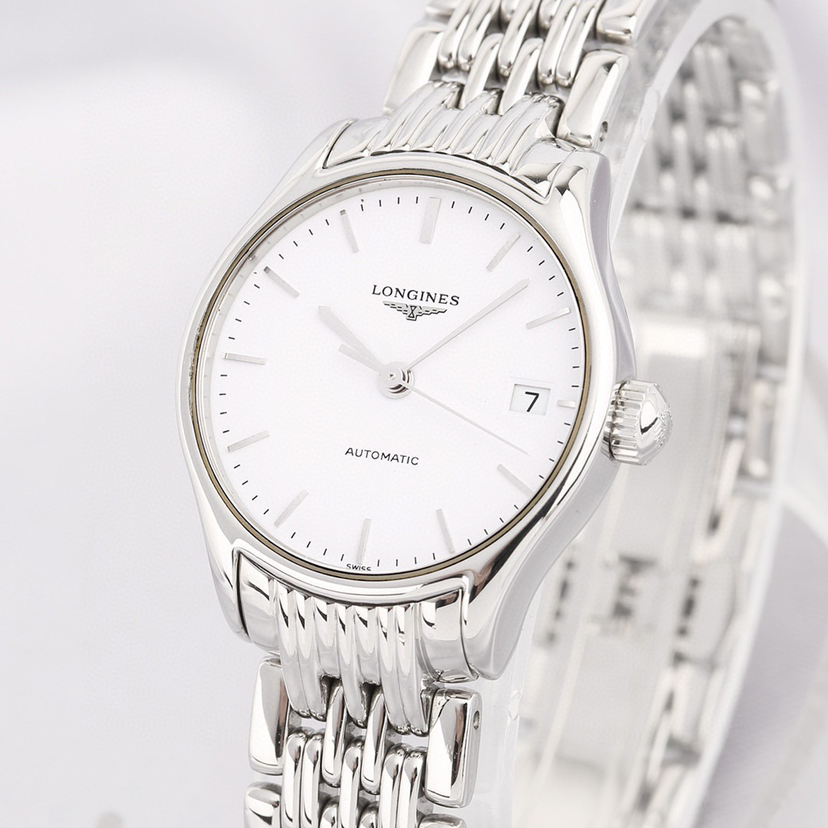 浪琴经典系列L4.360.4.12.6自动机械女士腕表,25mm表径,精钢材质,白盘罗马刻度,三点钟日历显示,新款镂空机芯,公价10500,现22年全套好价