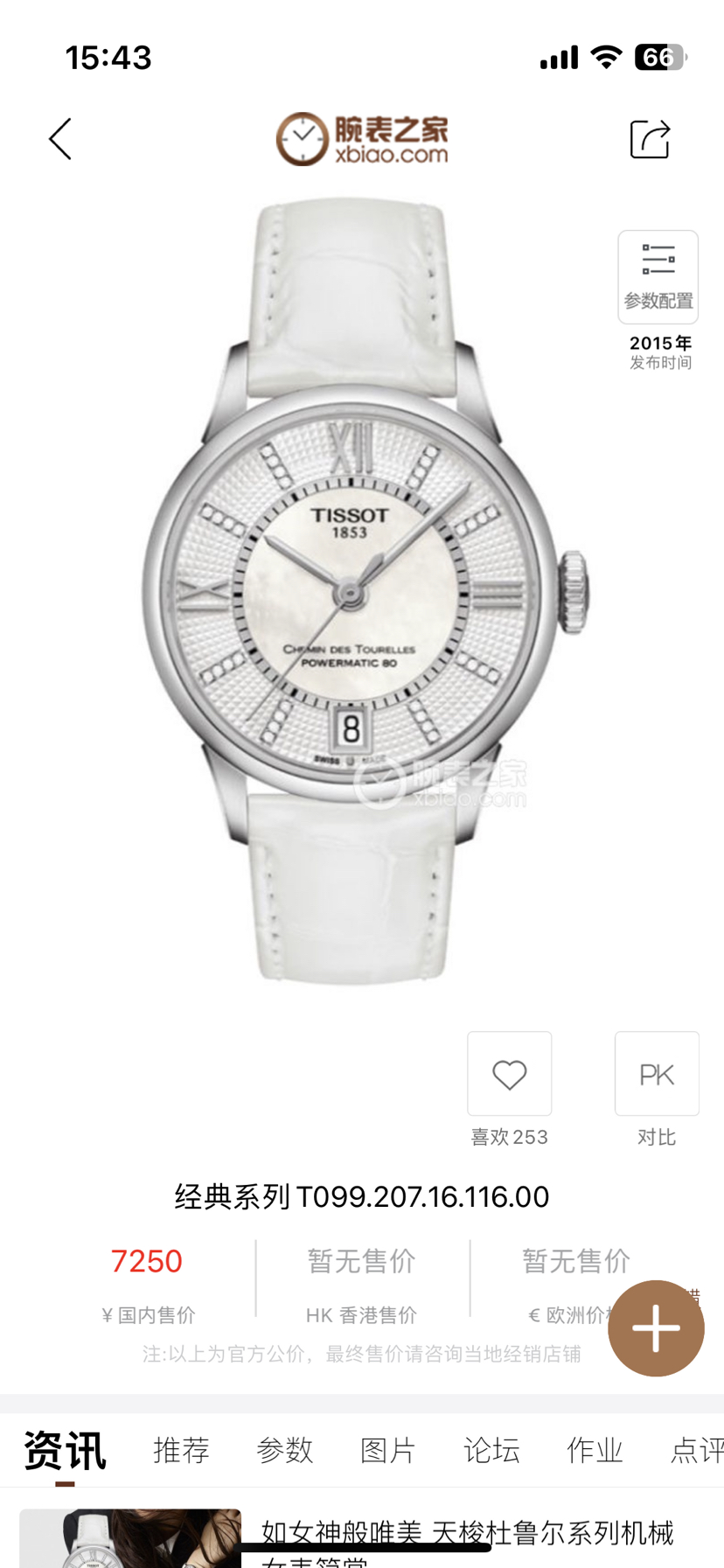 天梭经典T099.207.16.116.00机械女性