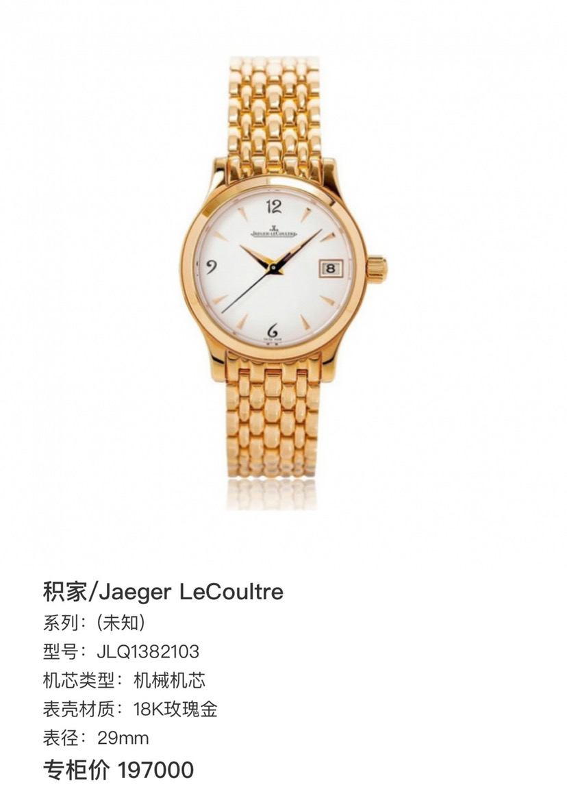 积家/Jaeger LeCoultre (未知) JLQ1382103 机械机芯 18K玫瑰金 29mm 专柜价 197000